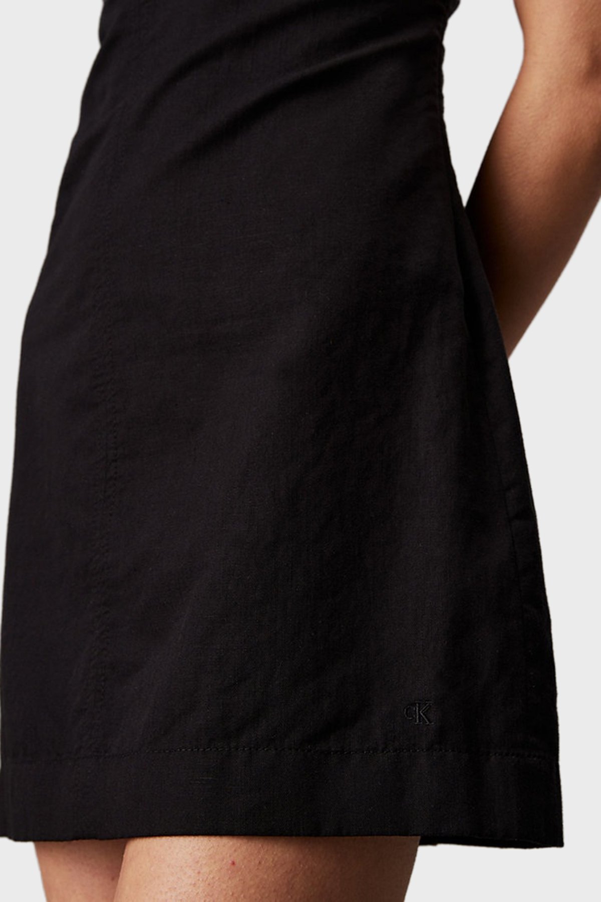 Pamuk ve Keten Karışımlı Regular Fit Kare Yaka Mini J20J225277BEH Bayan Elbise J20J225277 BEH SİYAH