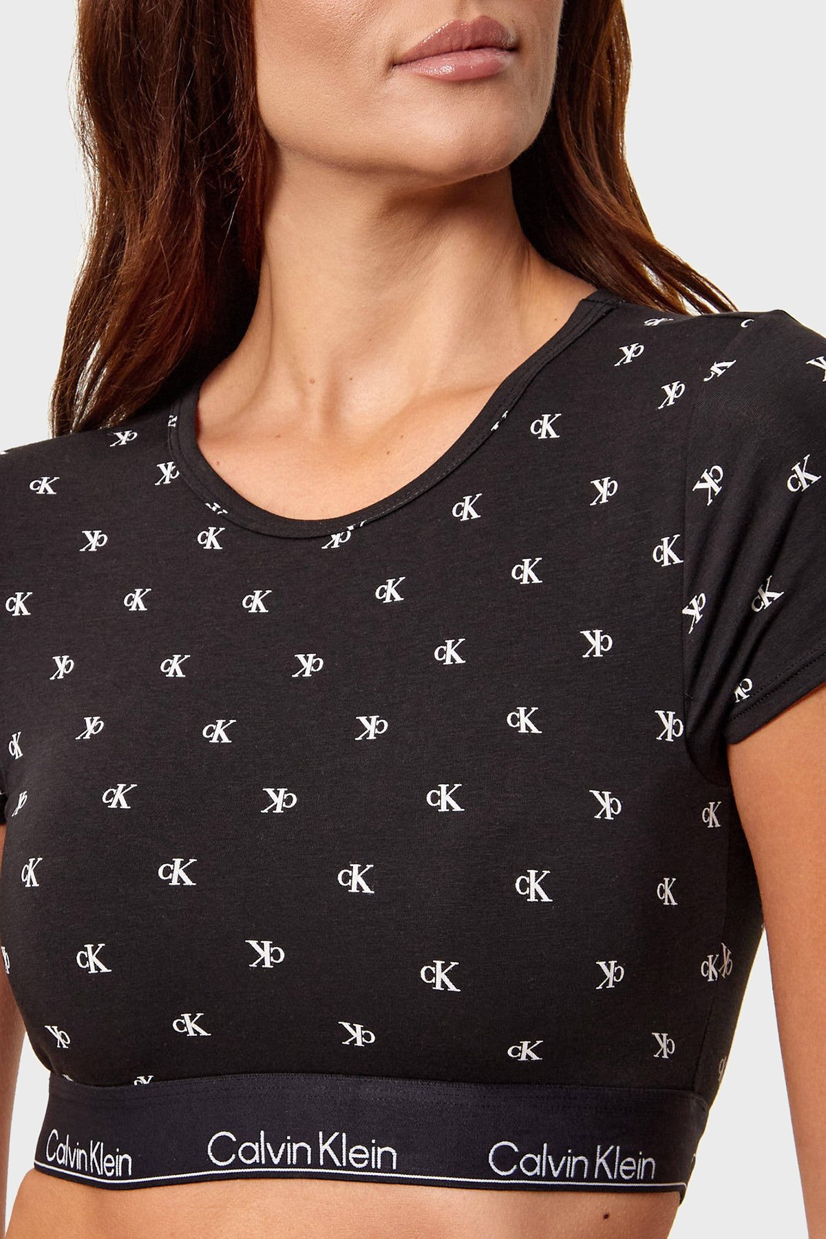 Pamuk ve Modal Karışımlı Logolu Yuvarlak Yaka LV00QF8495PCS Bayan Crop LV00QF8495 PCS SİYAH