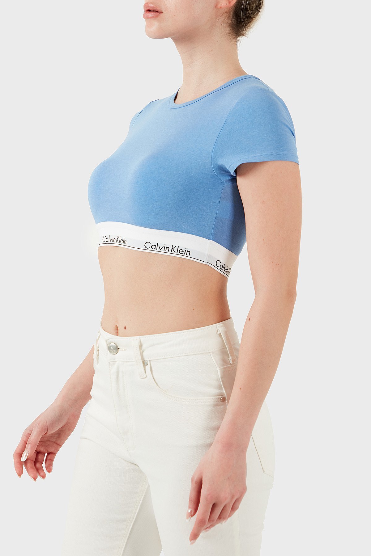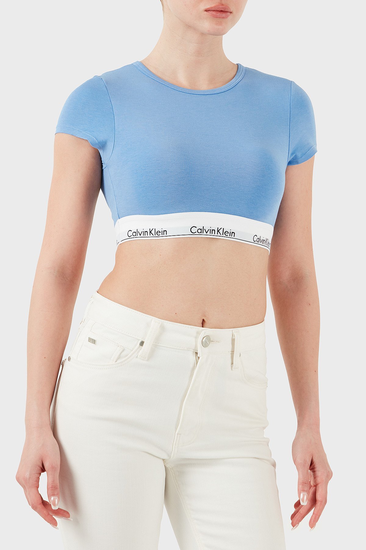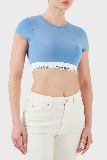 Pamuk ve Modal Karışımlı Slim Fit Logolu LV00QF7213PWB Bayan Top LV00QF7213 PWB MAVİ