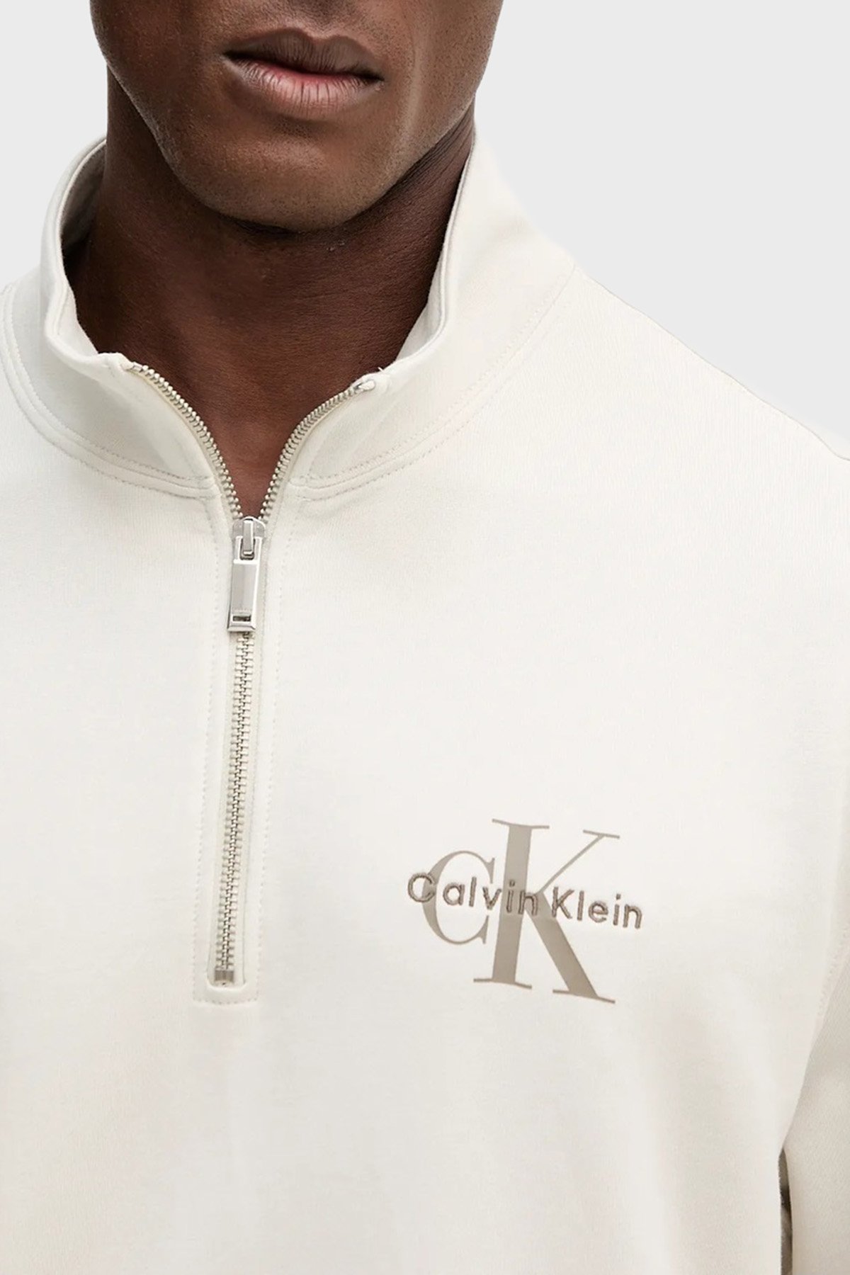 Pamuklu Loose Fit Yarım Fermuarlı Dik Yaka LV04RD244G67U Erkek Sweat LV04RD244G 67U EKRU