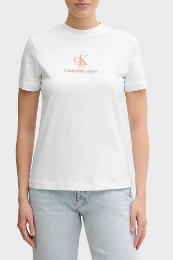 Pamuklu Monogram Logo Baskılı Regular Fit Bisiklet Yaka J20J225545YAA Bayan T Shirt J20J225545 YAA BEYAZ