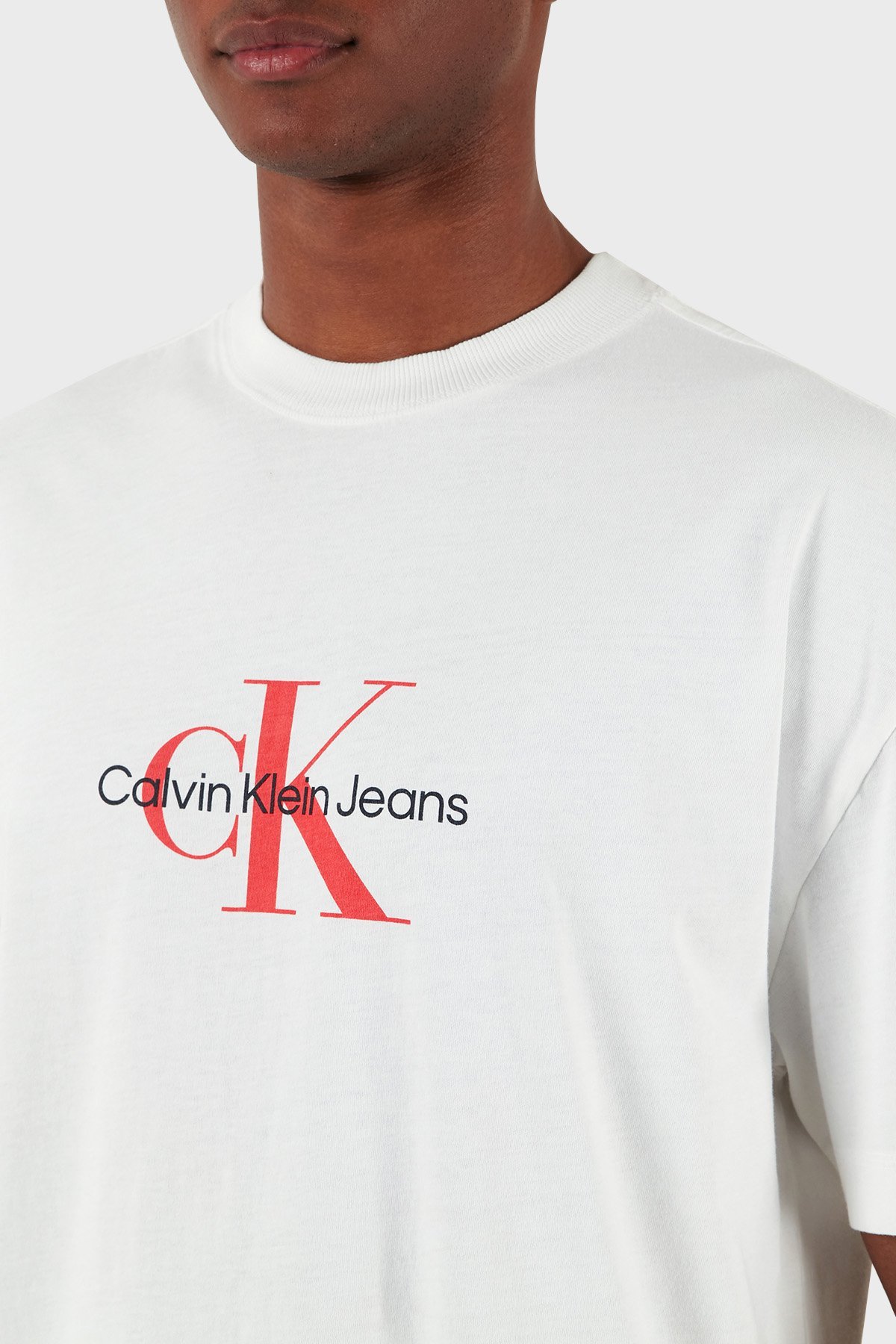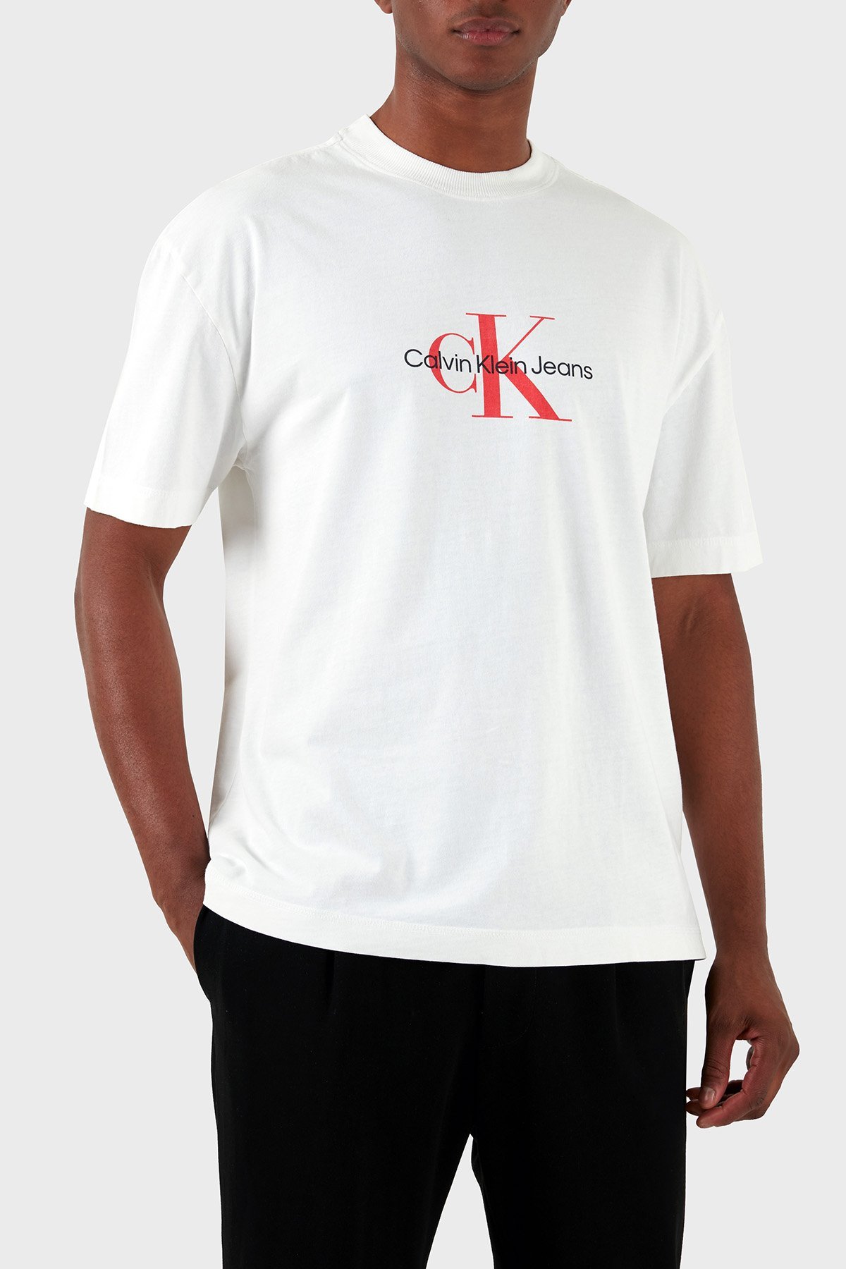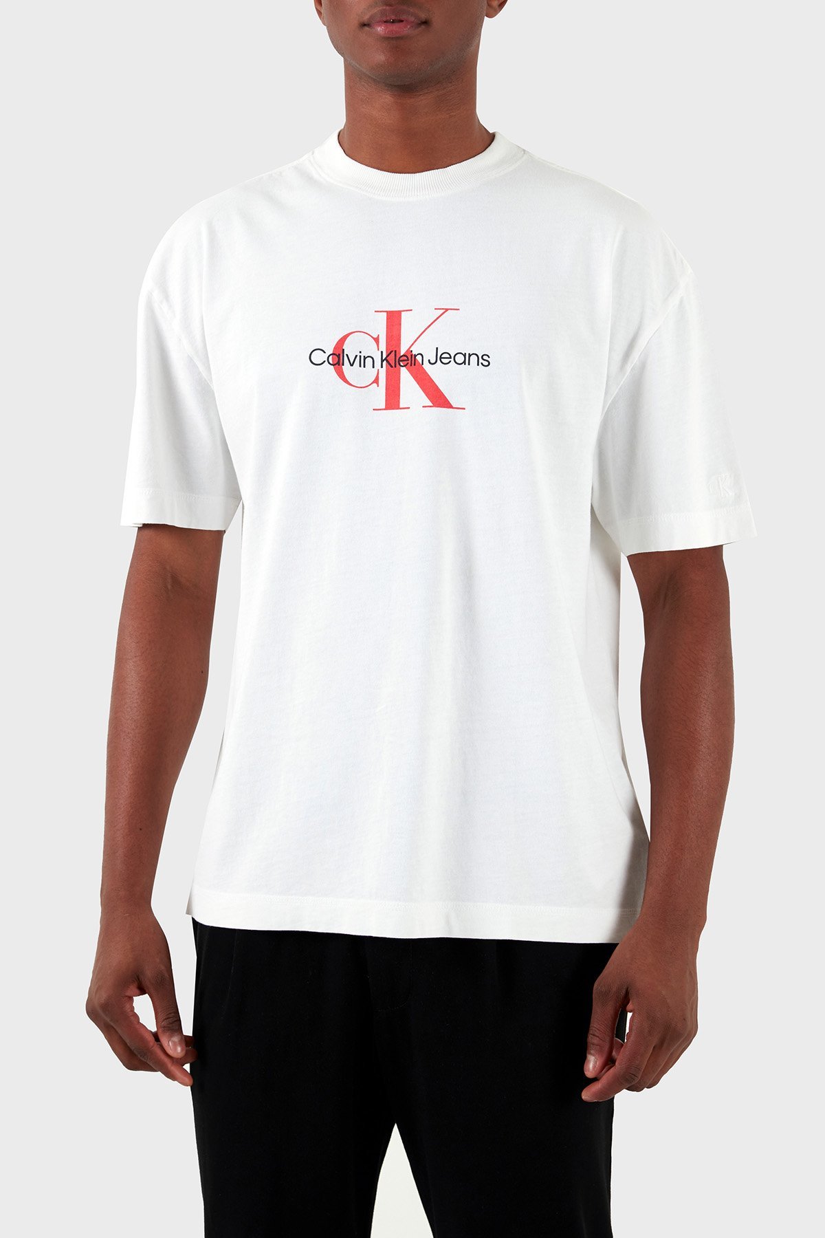 Pamuklu Oversize Bisiklet Yaka J30J325427YAF Erkek T Shirt J30J325427 YAF BEYAZ