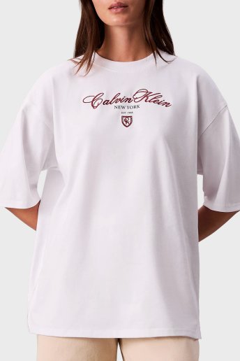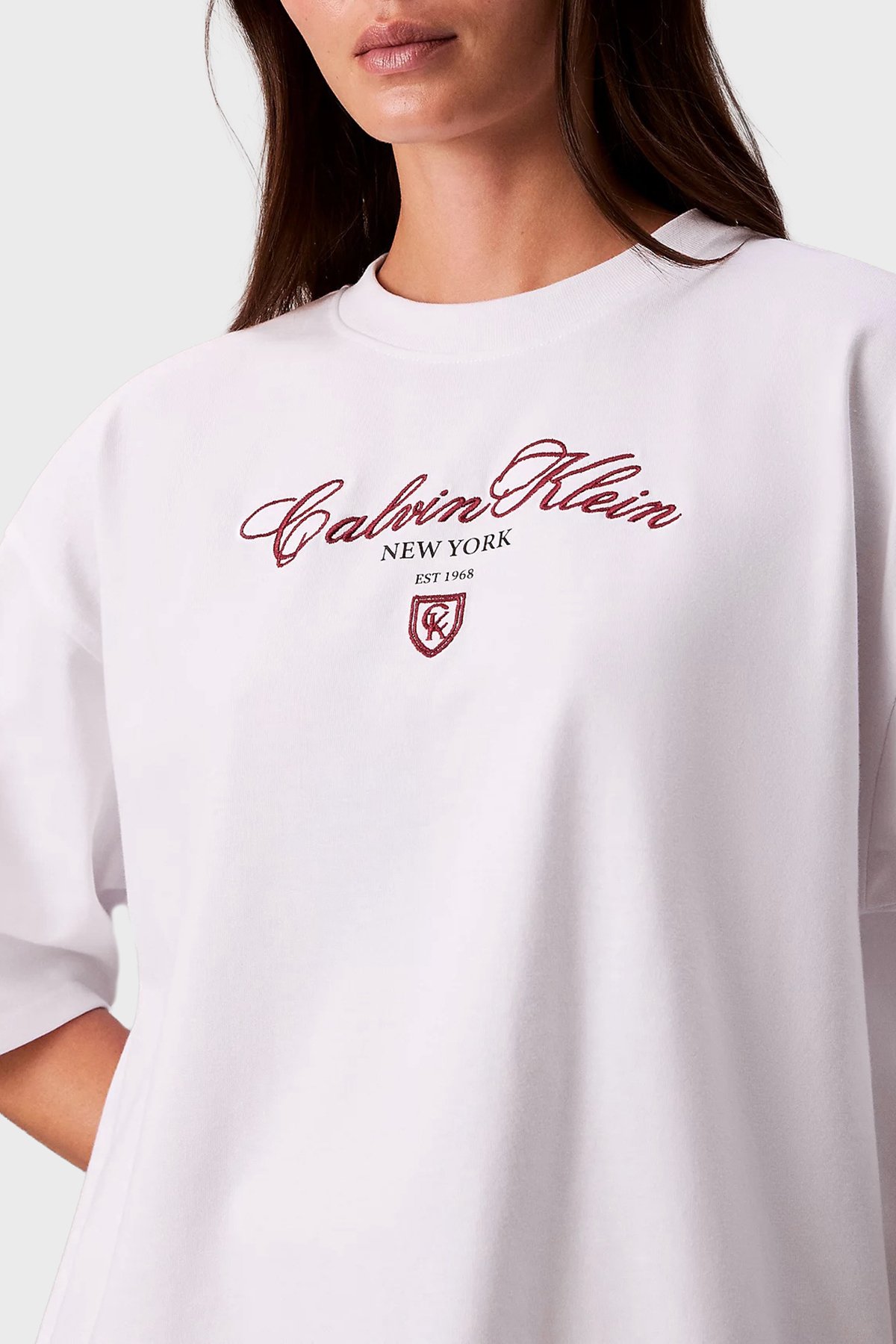 Pamuklu Oversize Bisiklet Yaka Logolu LV047E232GYAA Bayan T Shirt LV047E232G YAA BEYAZ