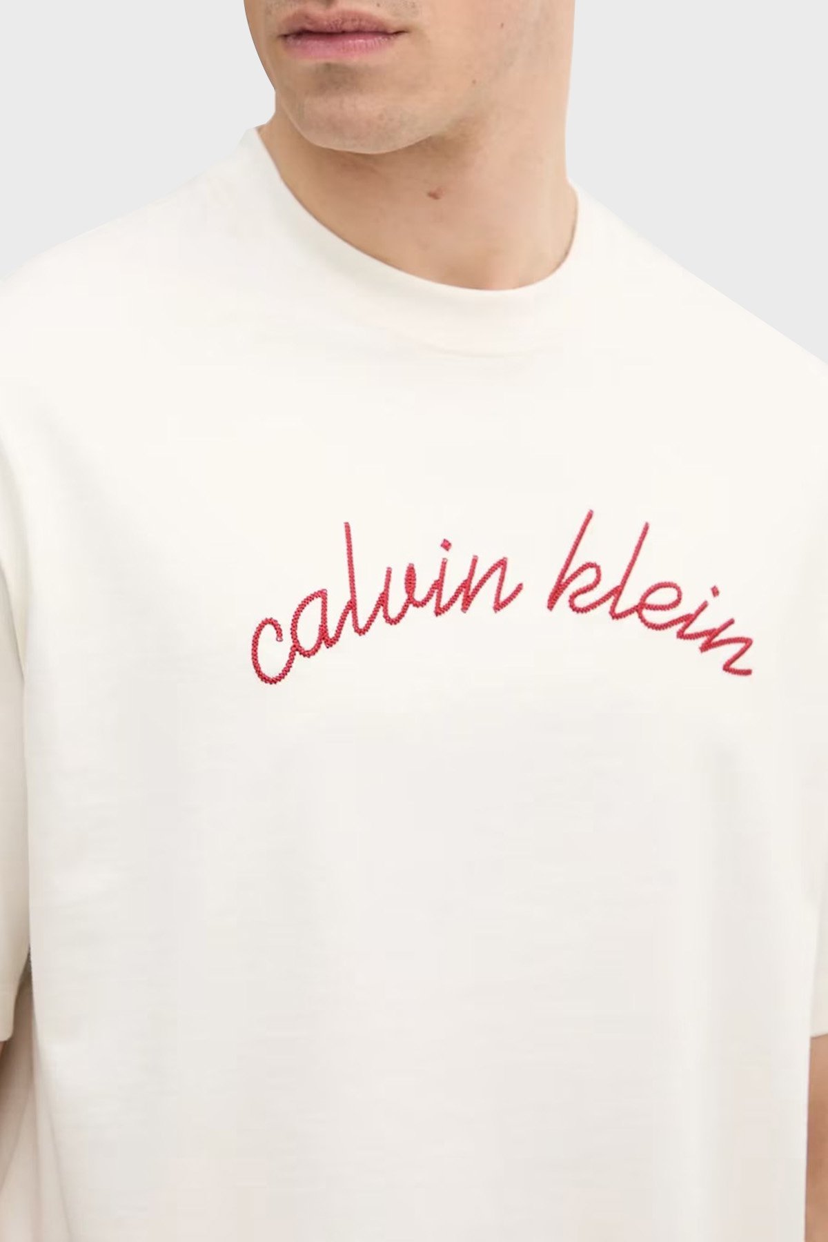 Pamuklu Regular Fit İşleme Logolu LV04RC225GYAS Erkek T Shirt LV04RC225G YAS BEYAZ