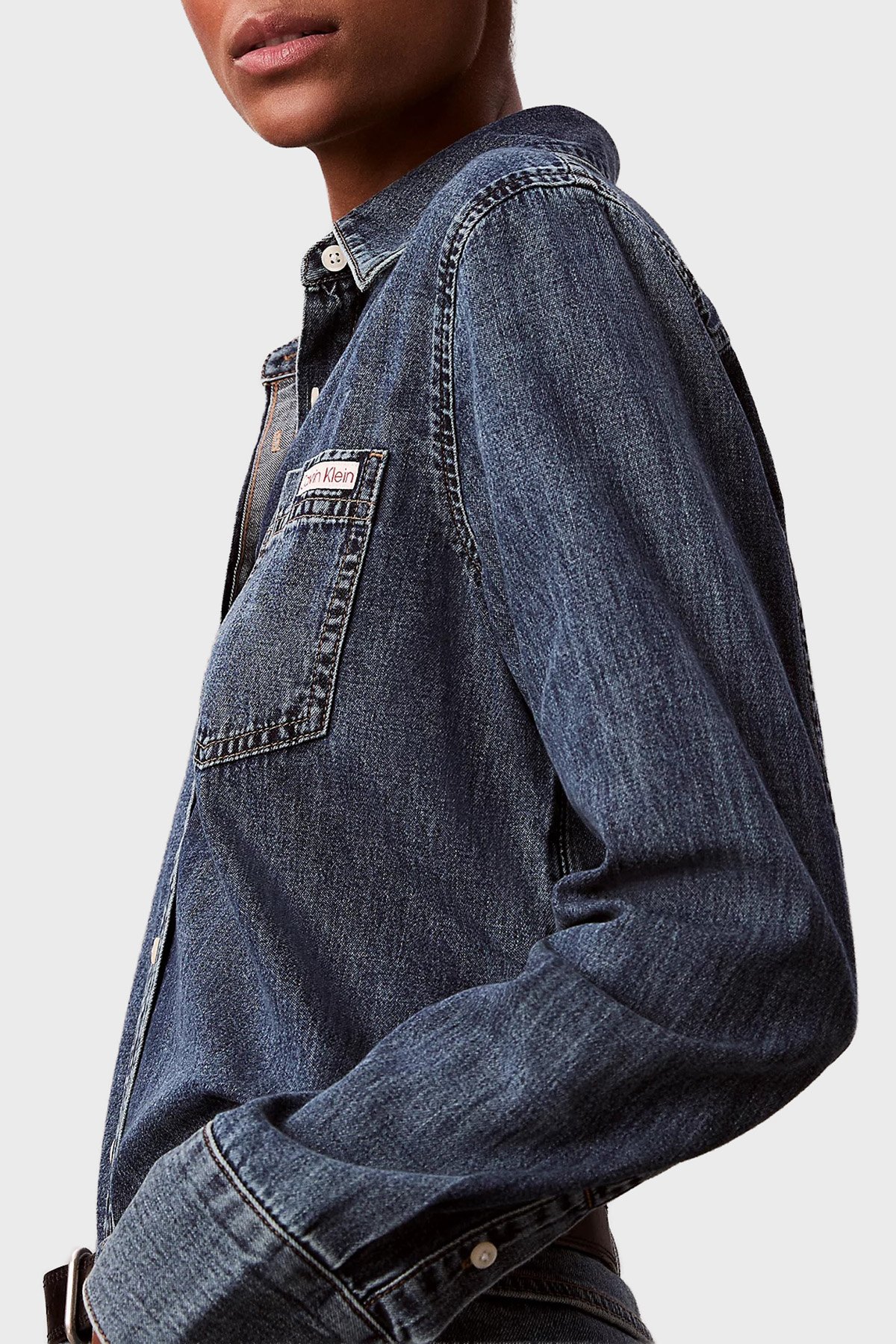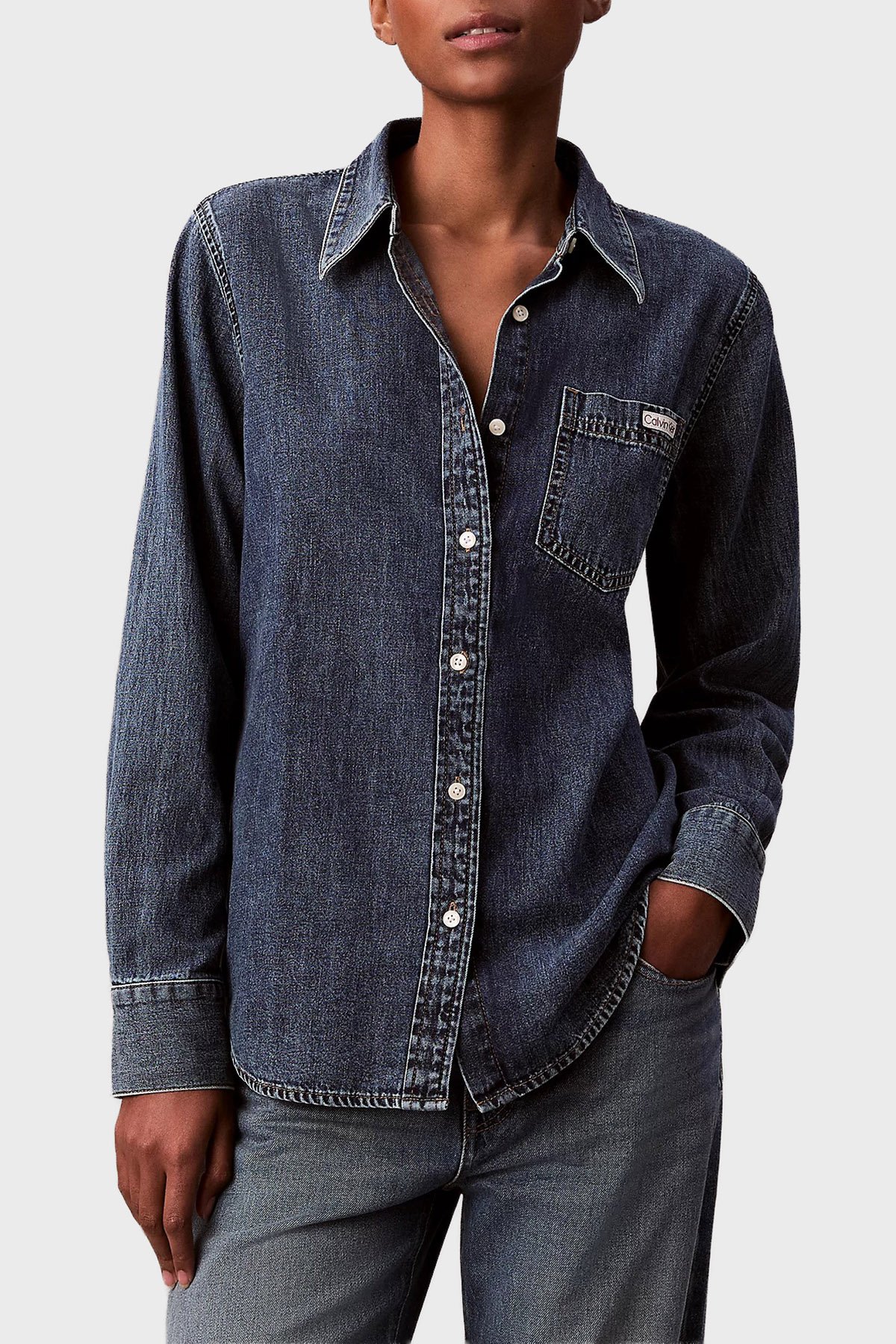 Pamuklu Regular Fit Klasik Yaka LV047E742G3UA Bayan Kot Gömlek LV047E742G 3UA LACİVERT