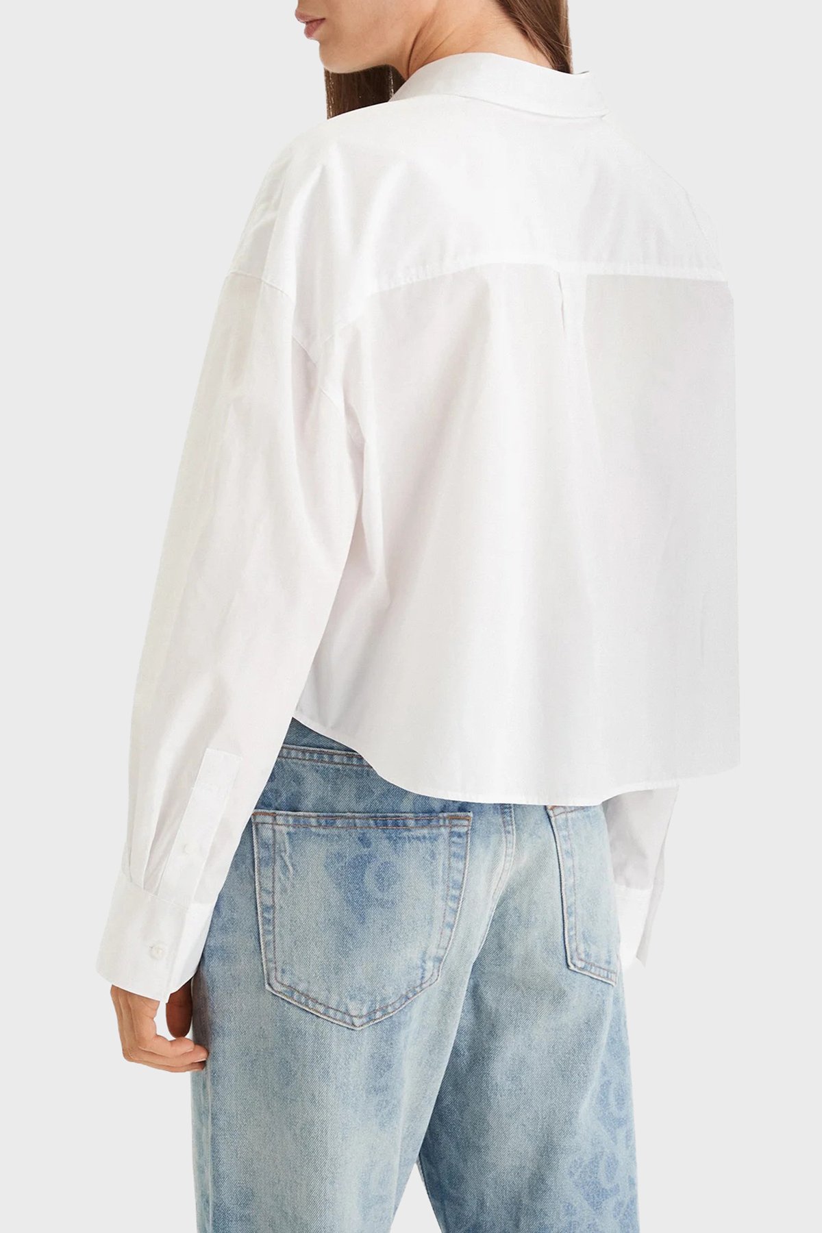 Pamuklu Regular Fit Logolu Uzun Kollu LV047F148GYAA Bayan Gömlek LV047F148G YAA BEYAZ