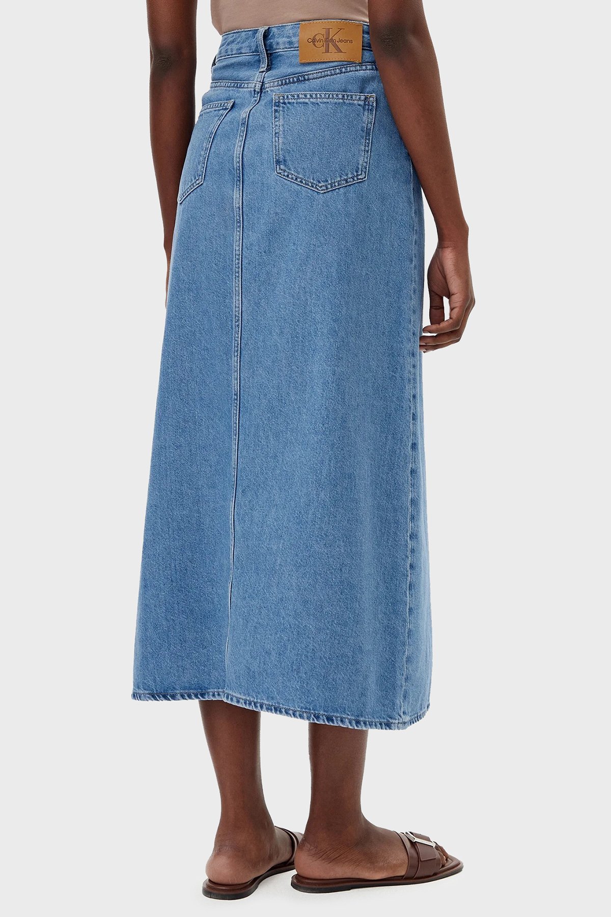 Pamuklu Regular Fit Yırtmaçlı Midi Boy Kot J20J2251921AA Bayan Etek J20J225192 1AA MAVİ