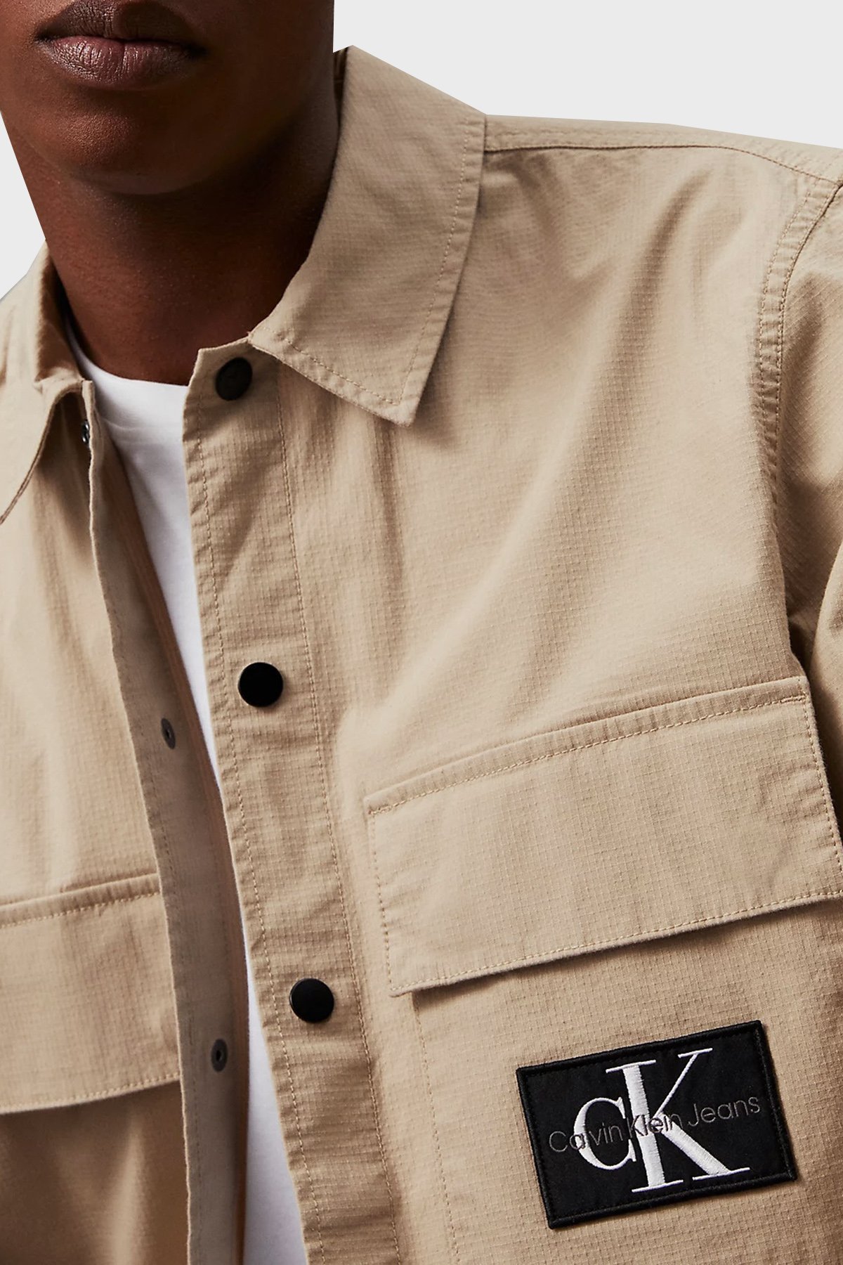 Pamuklu Relaxed Fit J30J325618PF2 Erkek Gömlek Ceket J30J325618 PF2 BEJ