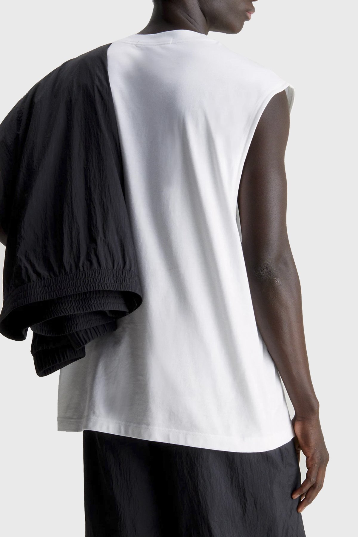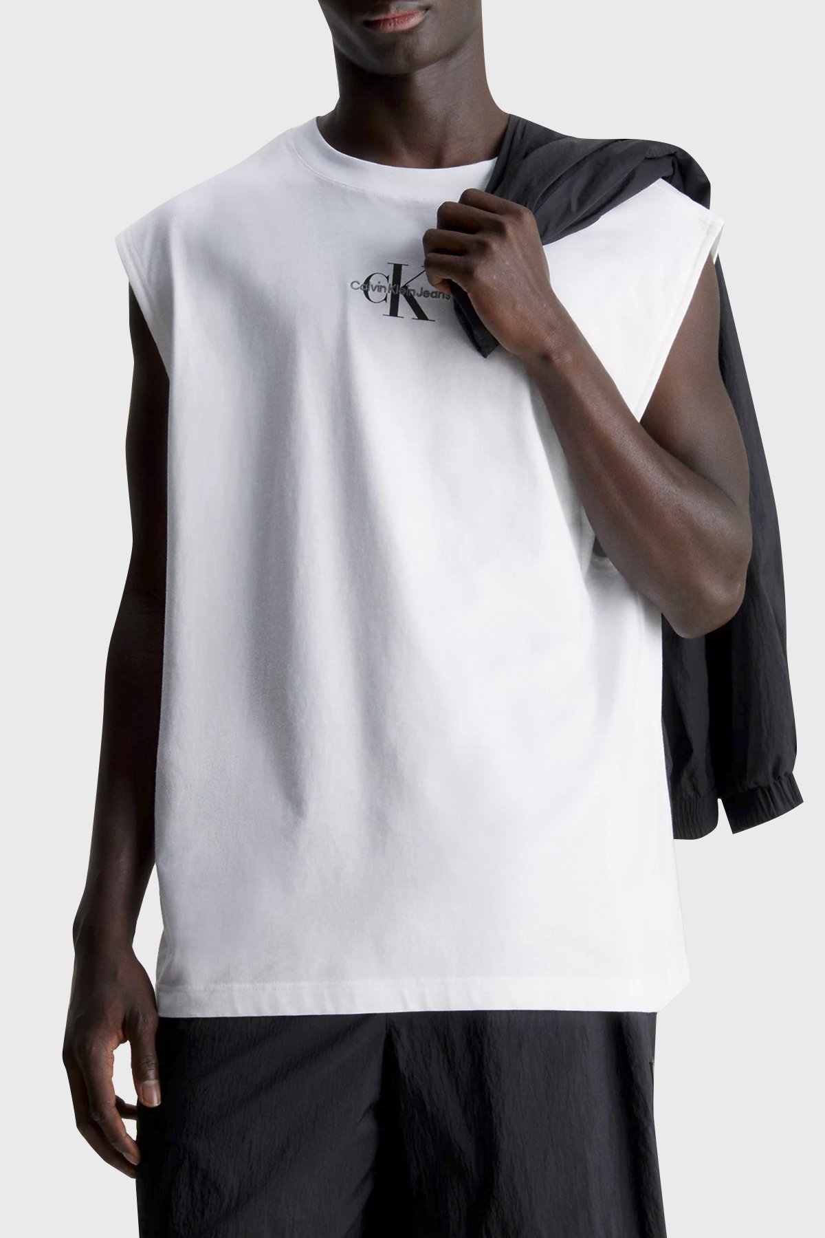 Pamuklu Relaxed Fit Kolsuz J30J325211YAF Erkek T Shirt J30J325211 YAF BEYAZ