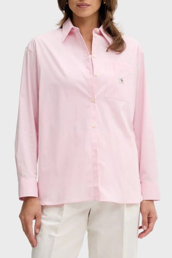 Pamuklu Relaxed Fit Uzun Kollu Logolu LV047C143GW0S Bayan Gömlek LV047C143G W0S PEMBE