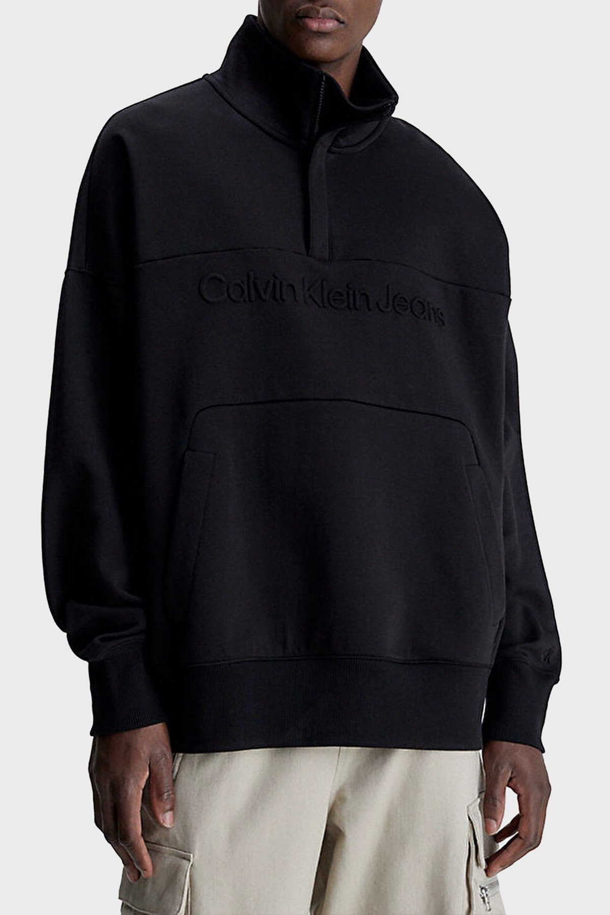 Pamuklu Relaxed Fit Yarım Fermuarlı Dik Yaka J30J324149BEH Erkek Sweat J30J324149 BEH SİYAH
