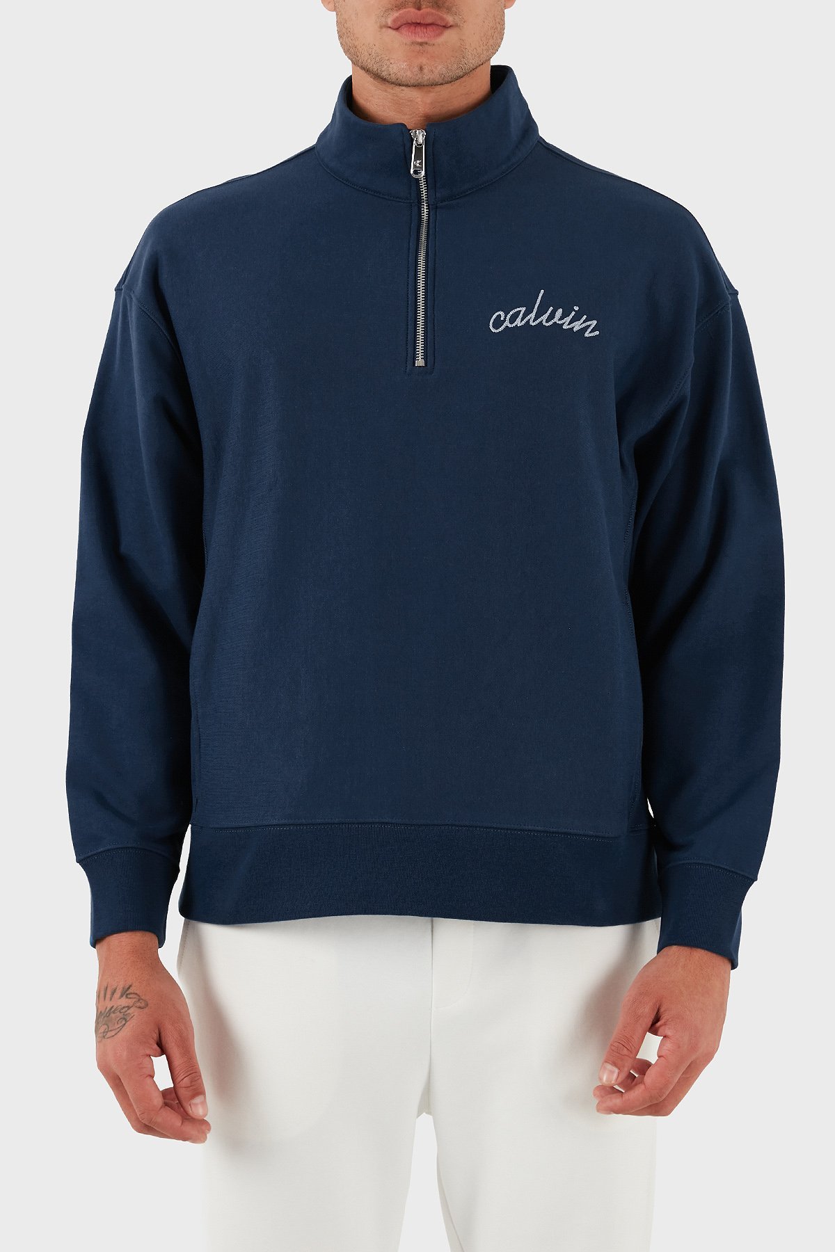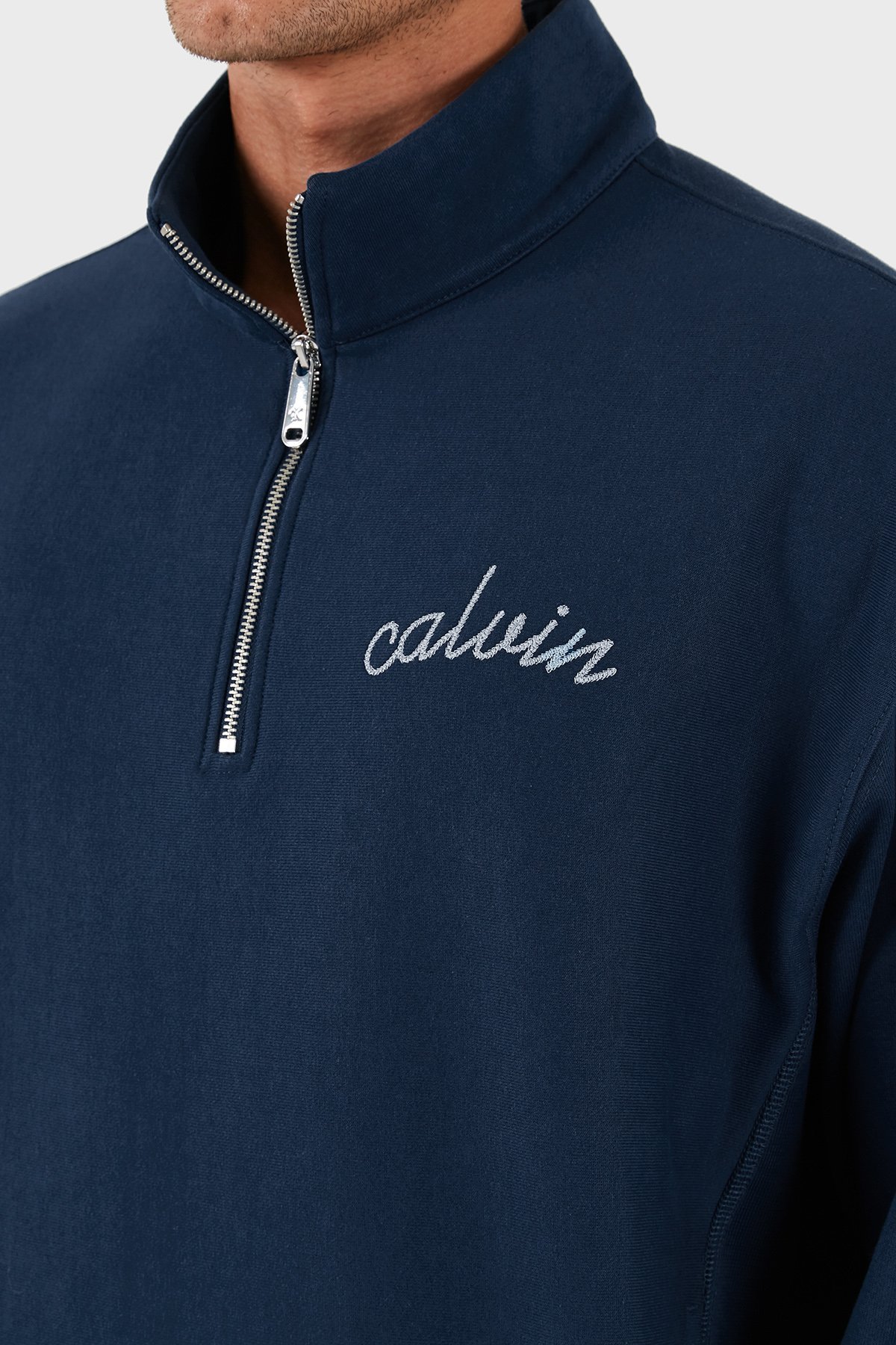 Pamuklu Relaxed Fit Yarım Fermuarlı Dik Yaka LV04RC227GC3I Erkek Sweat LV04RC227G C3I LACİVERT