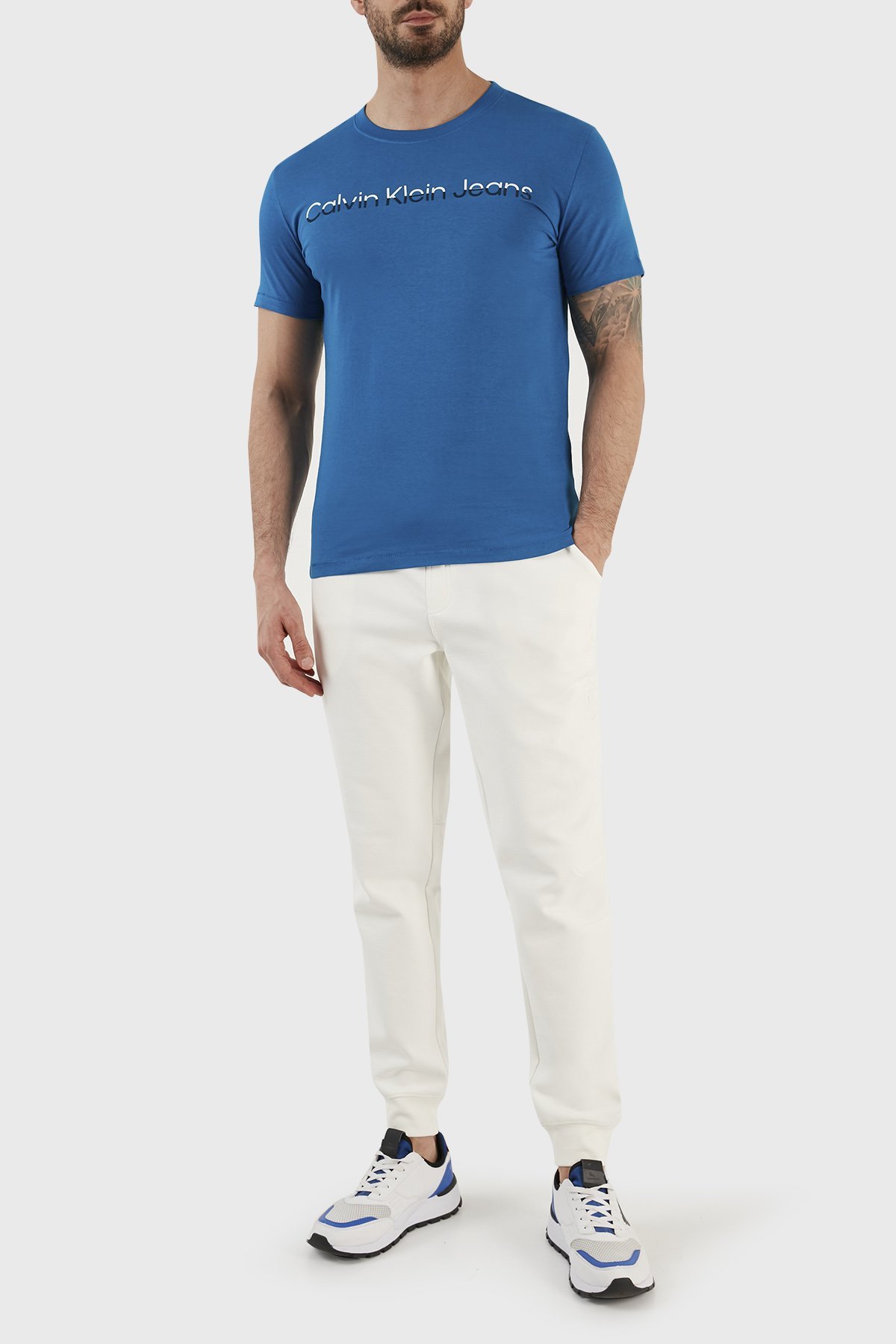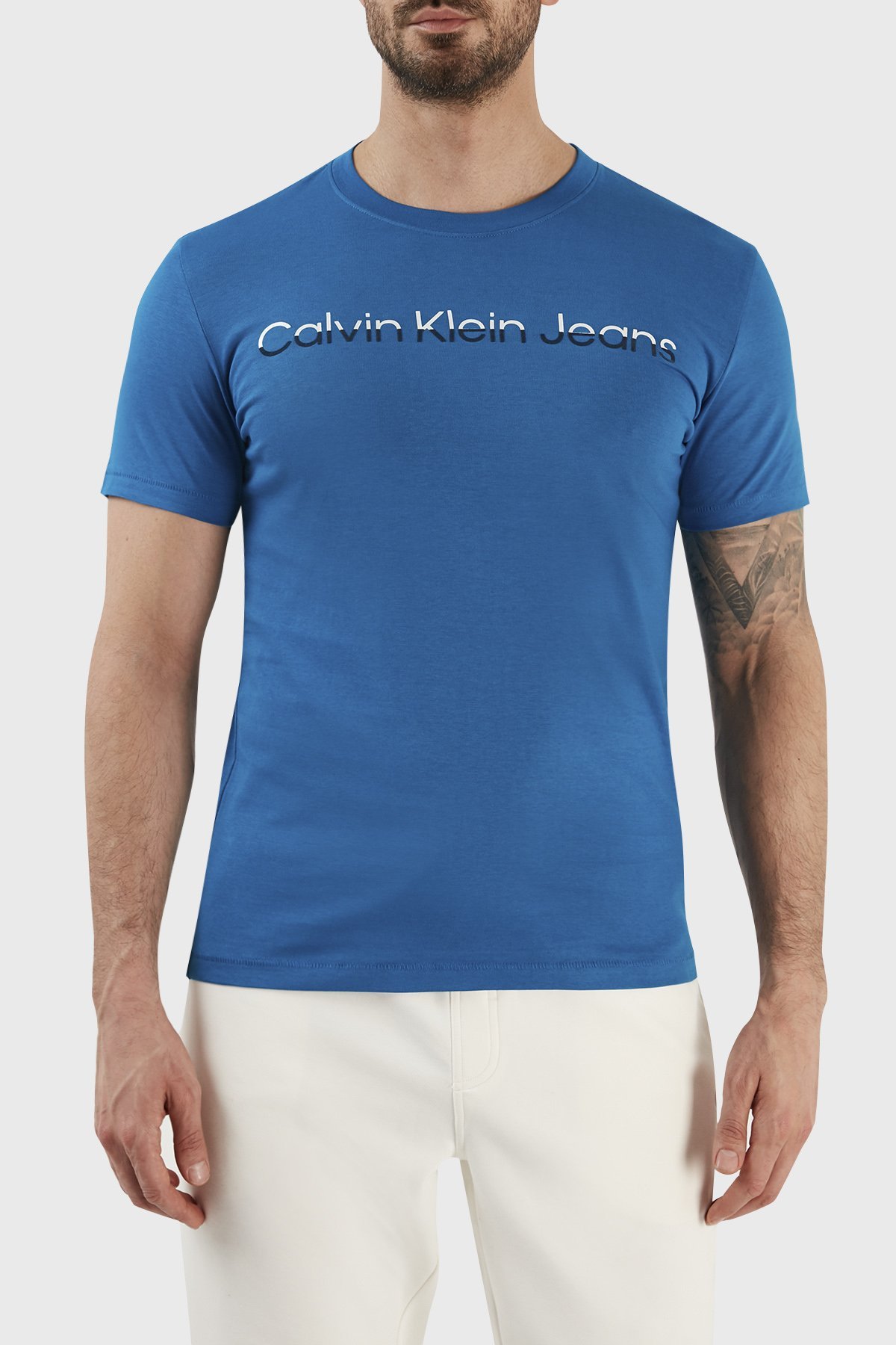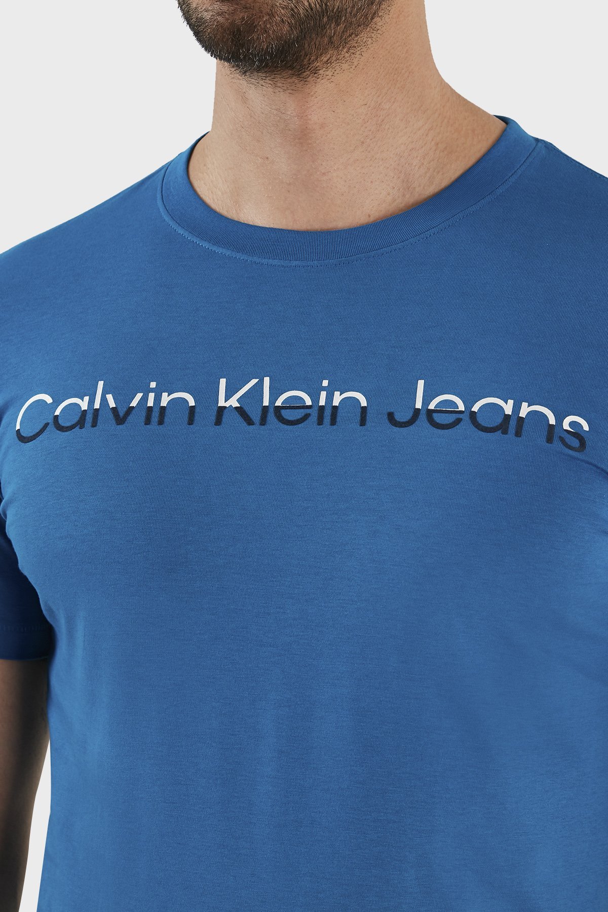 Pamuklu Slim Fit Bisiklet Yaka J30J322511C3B Erkek T Shirt J30J322511 C3B MAVİ