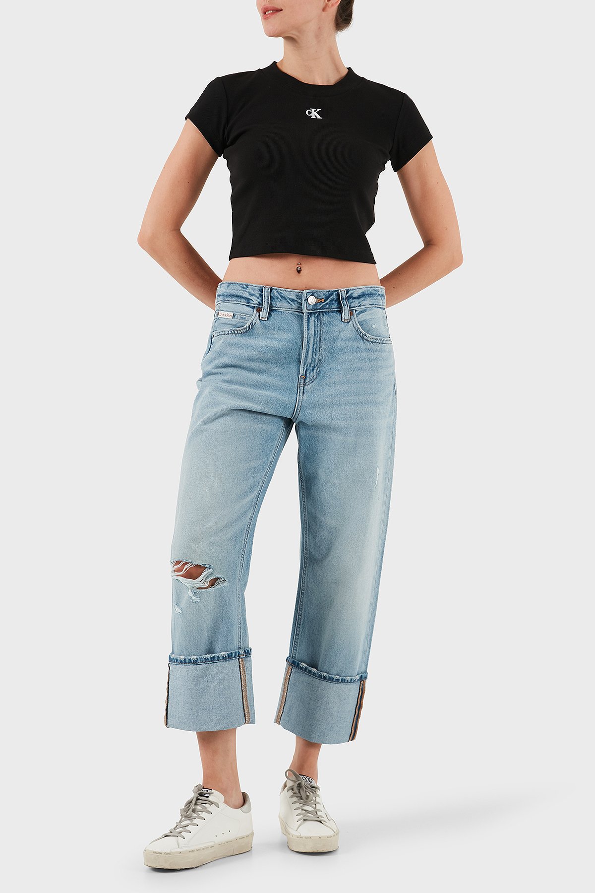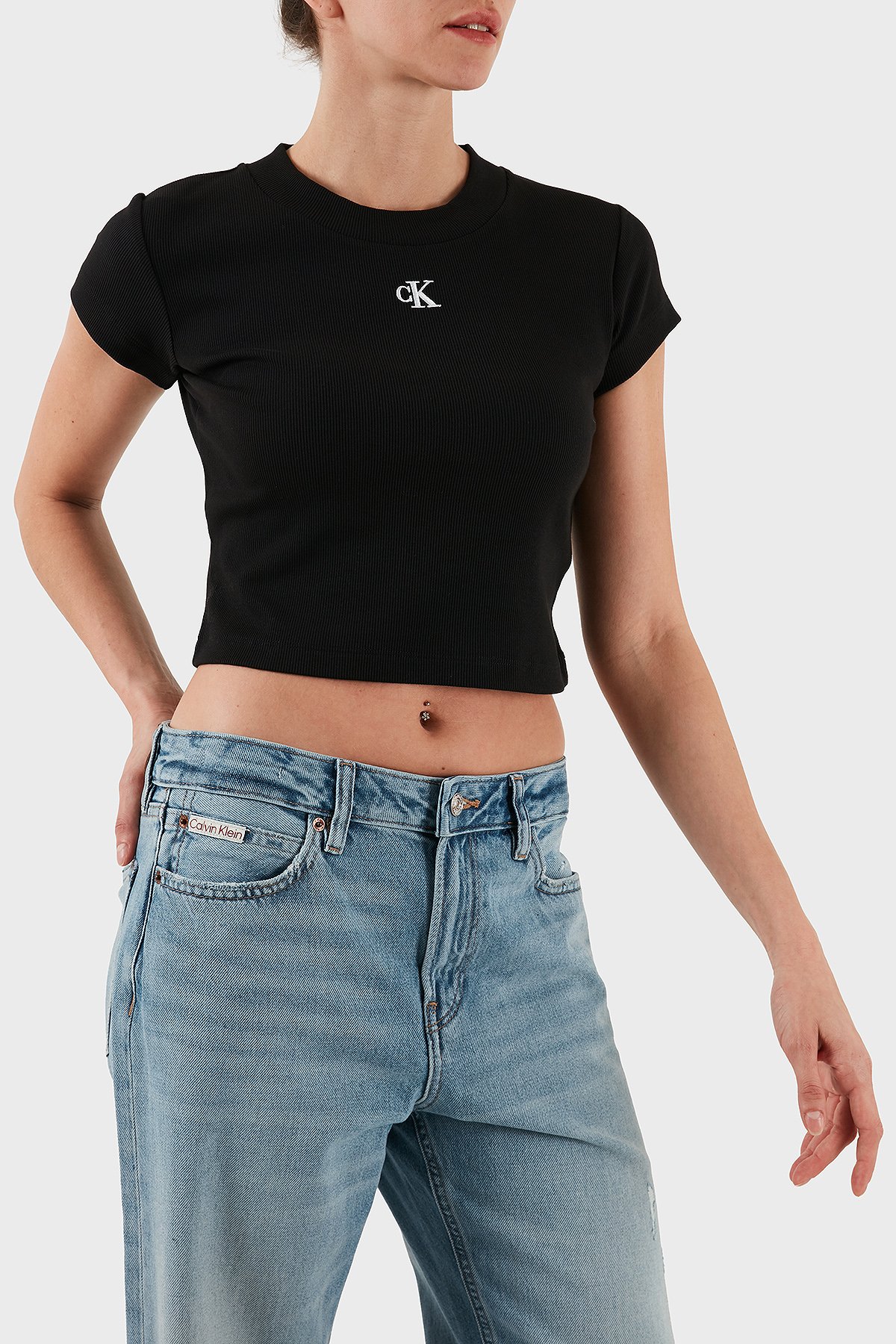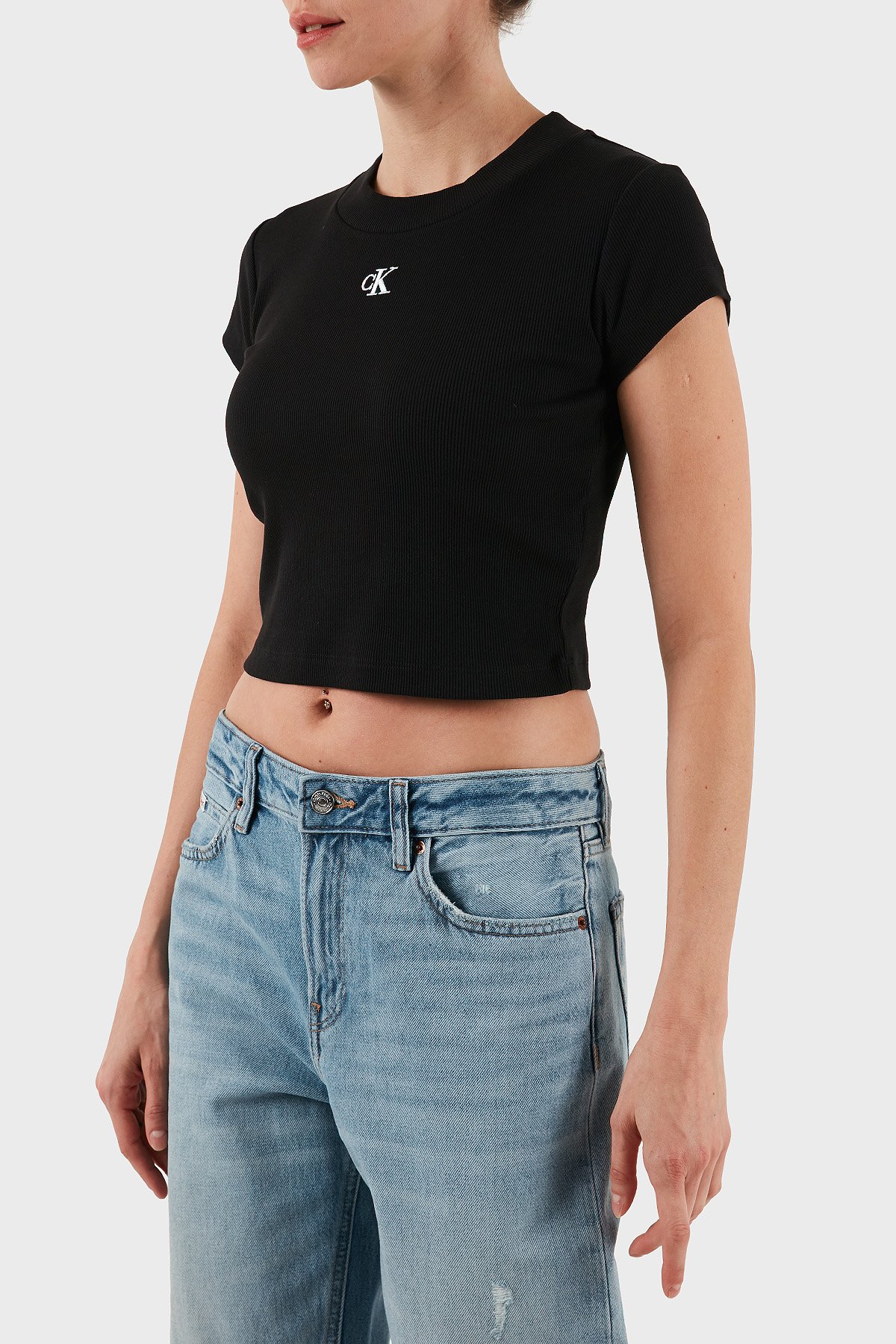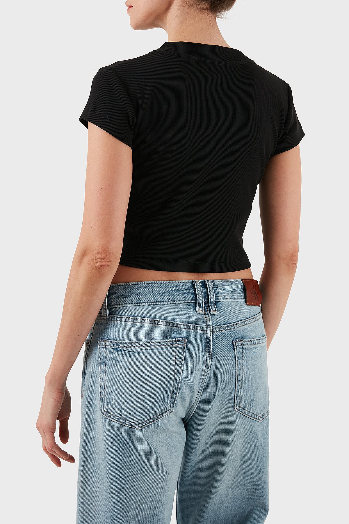 Pamuklu Slim Fit Bisiklet Yaka Logolu Crop LV047C211GUB1 Bayan T Shirt LV047C211G UB1 SİYAH