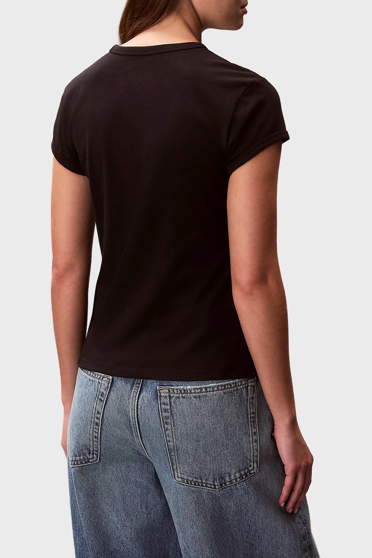 Pamuklu Slim Fit Logolu Bisiklet Yaka Kadın T Shirt LV047F815G UB1 SİYAH