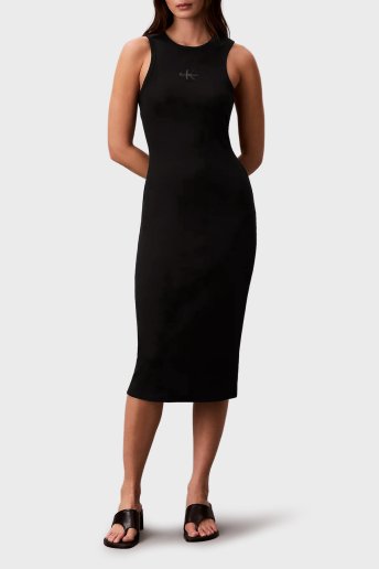 Pamuklu Slim Fit Logolu Bisiklet Yaka Mdi LV047F242GUB1 Bayan Elbise LV047F242G UB1 SİYAH