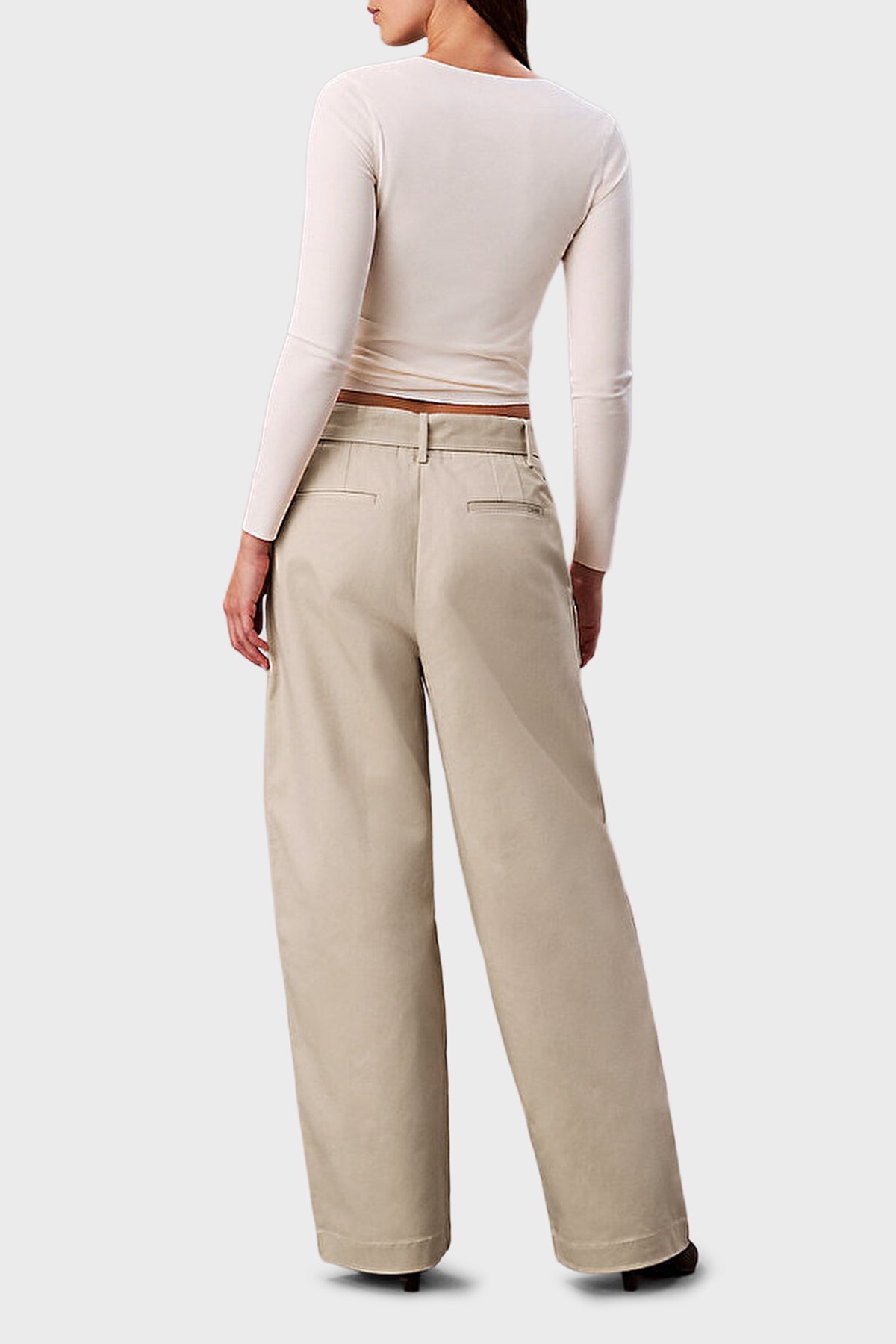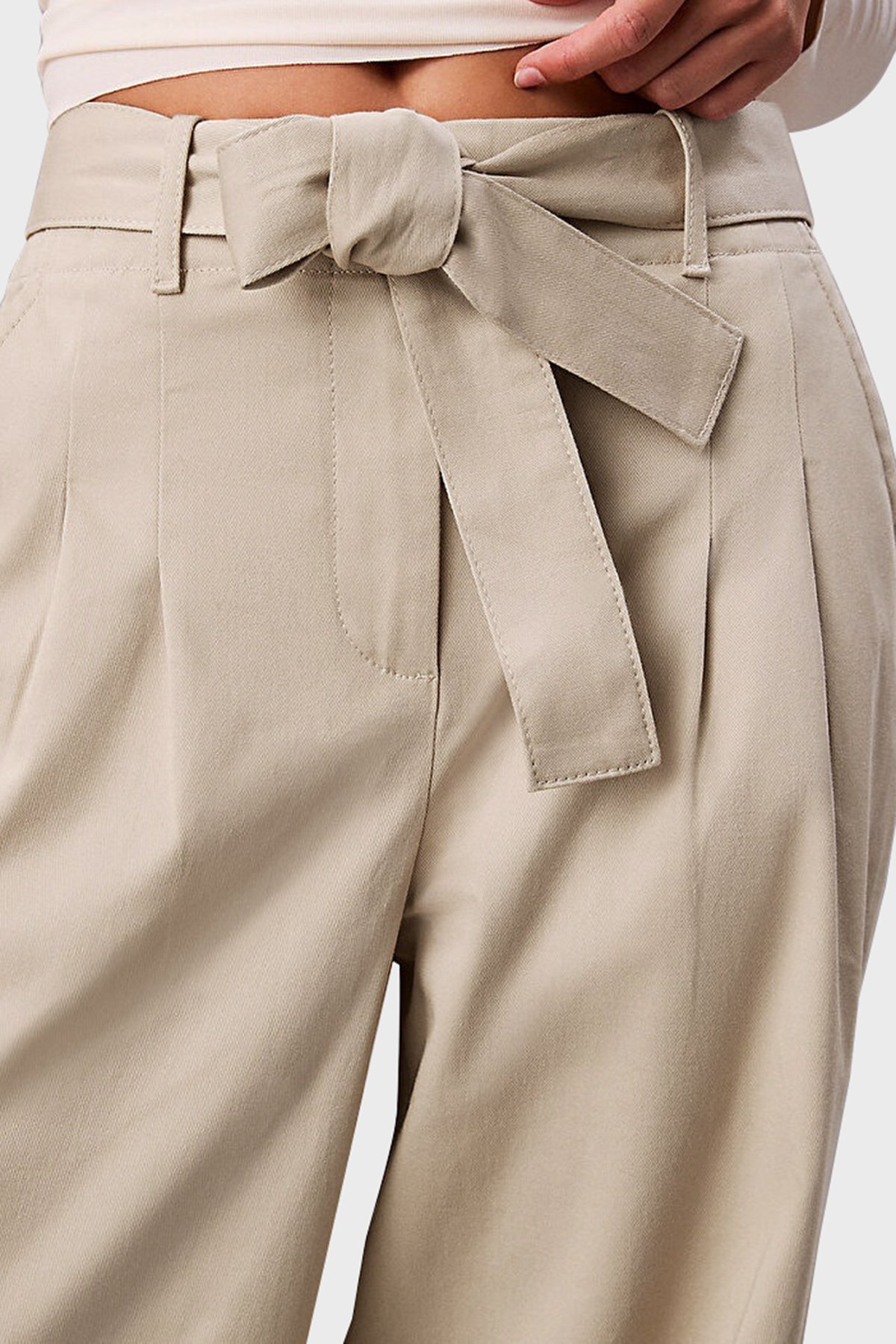 Pamuklu Wide Leg Fit Yüksek Bel LV044E619G2F2 Bayan Pantolon LV044E619G 2F2 BEJ