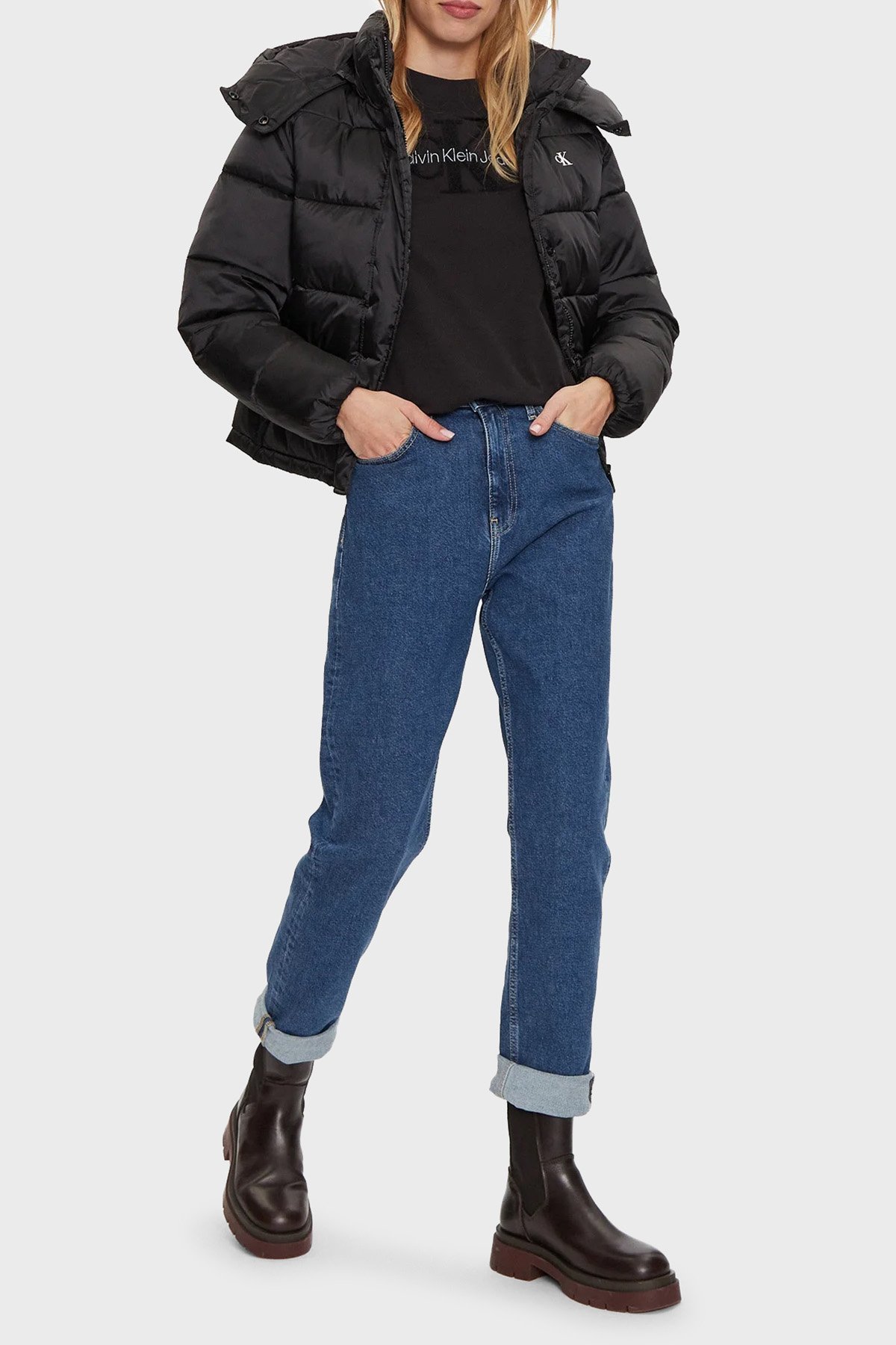 Regular Fit Çıkarılabilir Kapüşonlu Parlak Saten Şişme J20J224616BEH Bayan Mont J20J224616 BEH SİYAH
