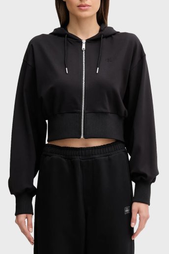 Regular Fit Kapüşonlu Fermuarlı Logolu Crop LV047C247GUB1 Bayan Sweat LV047C247G UB1 SİYAH