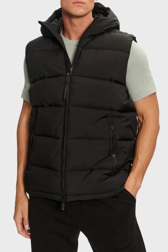 Regular Fit Kapüşonlu Kapitone Şişme 00GMF4O512BAE Erkek Yelek 00GMF4O512 BAE SİYAH