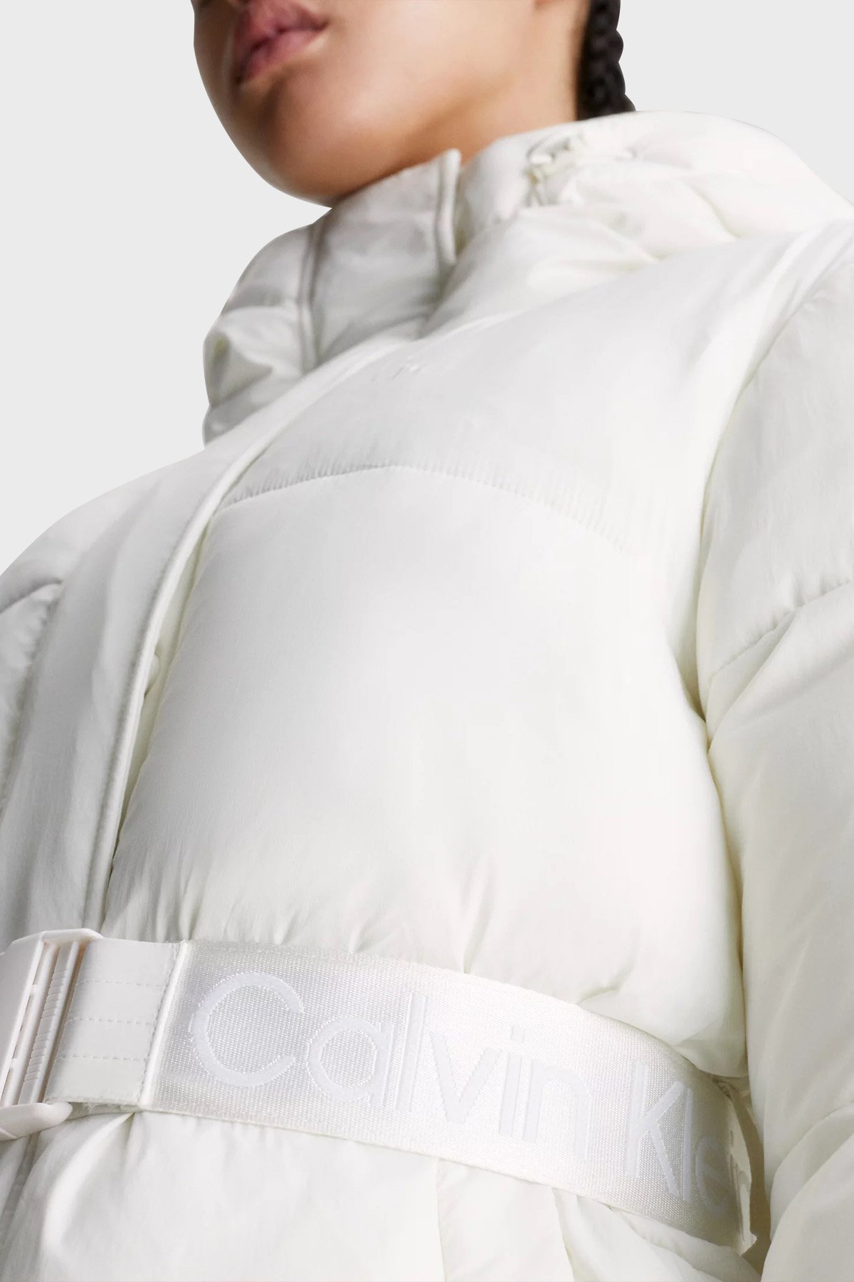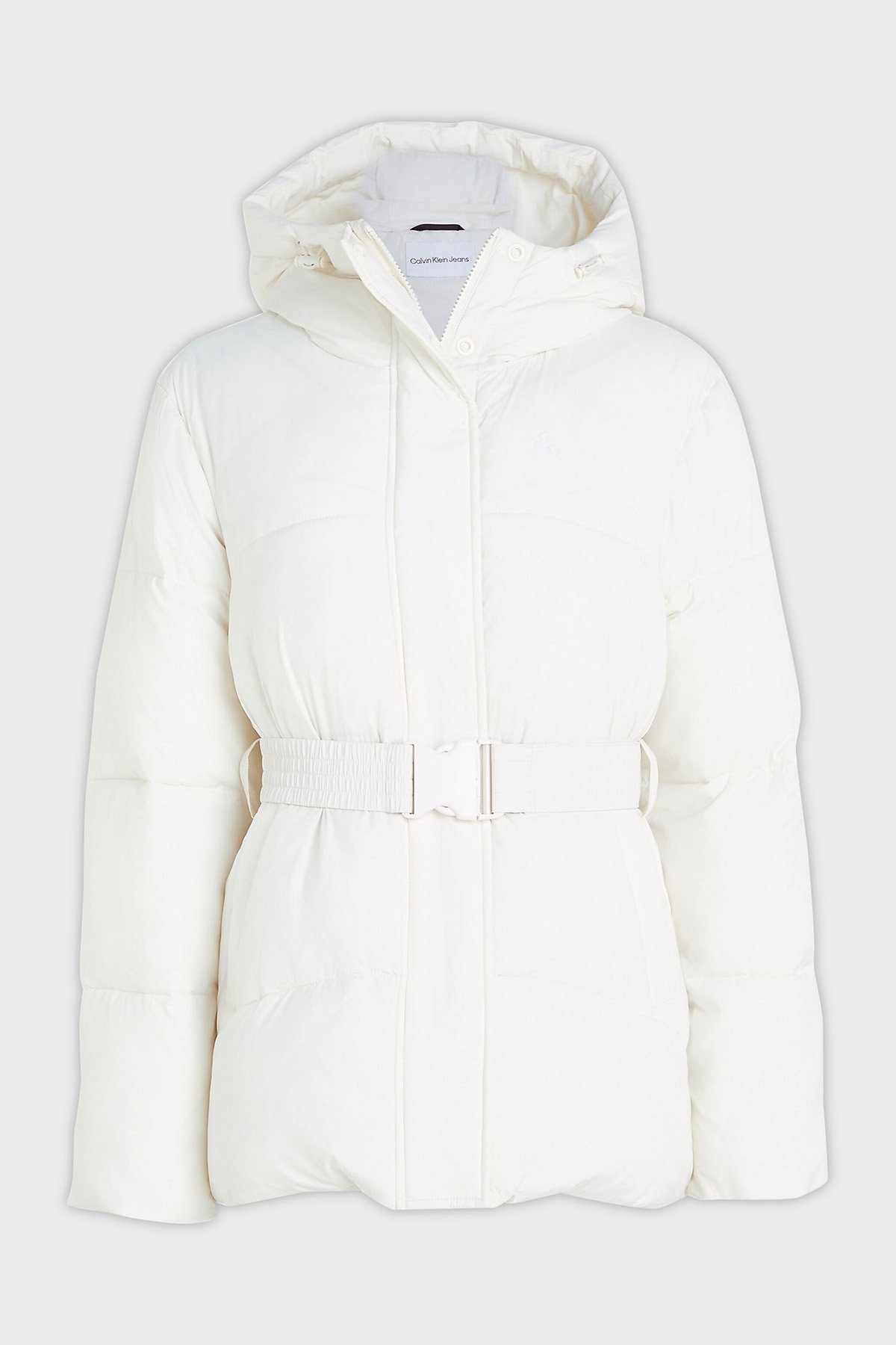 Regular Fit Kemerli Kapüşonlu Şişme J20J221896YBI Bayan Mont J20J221896 YBI BEYAZ