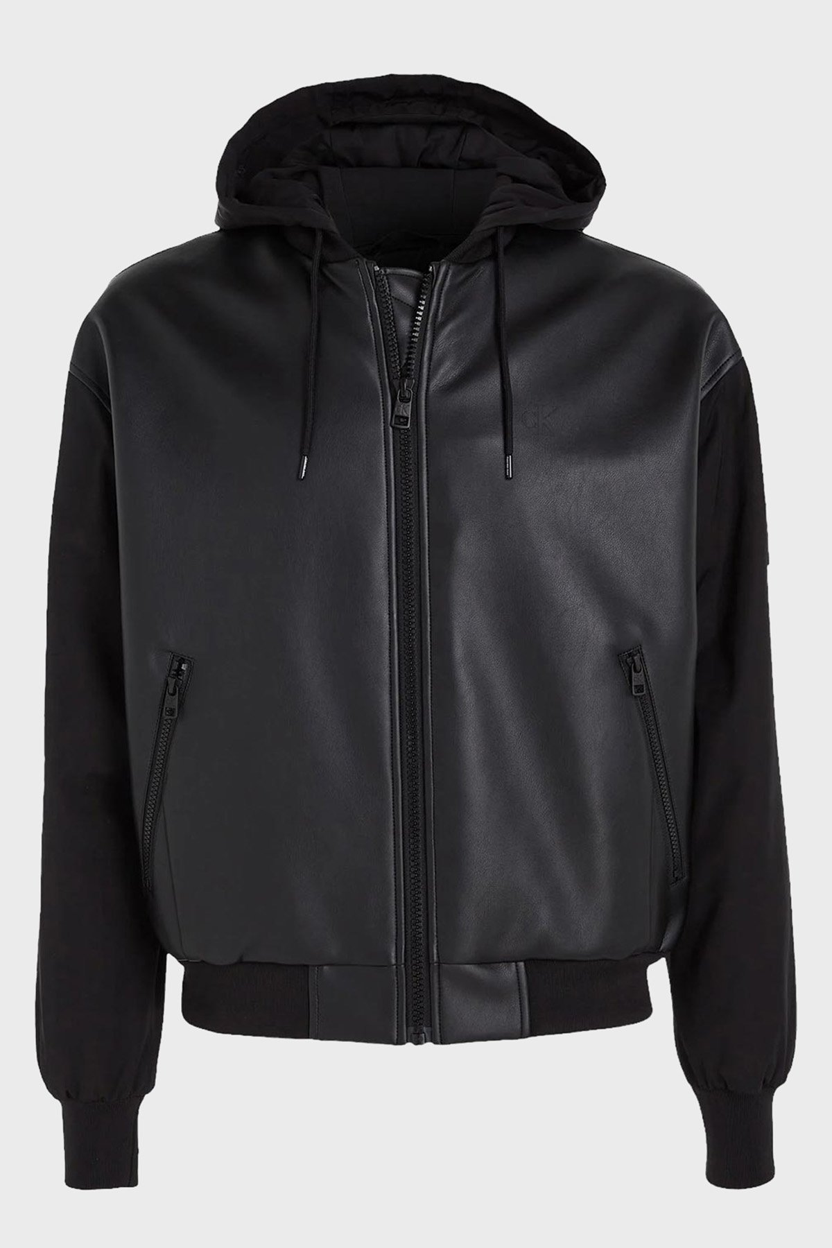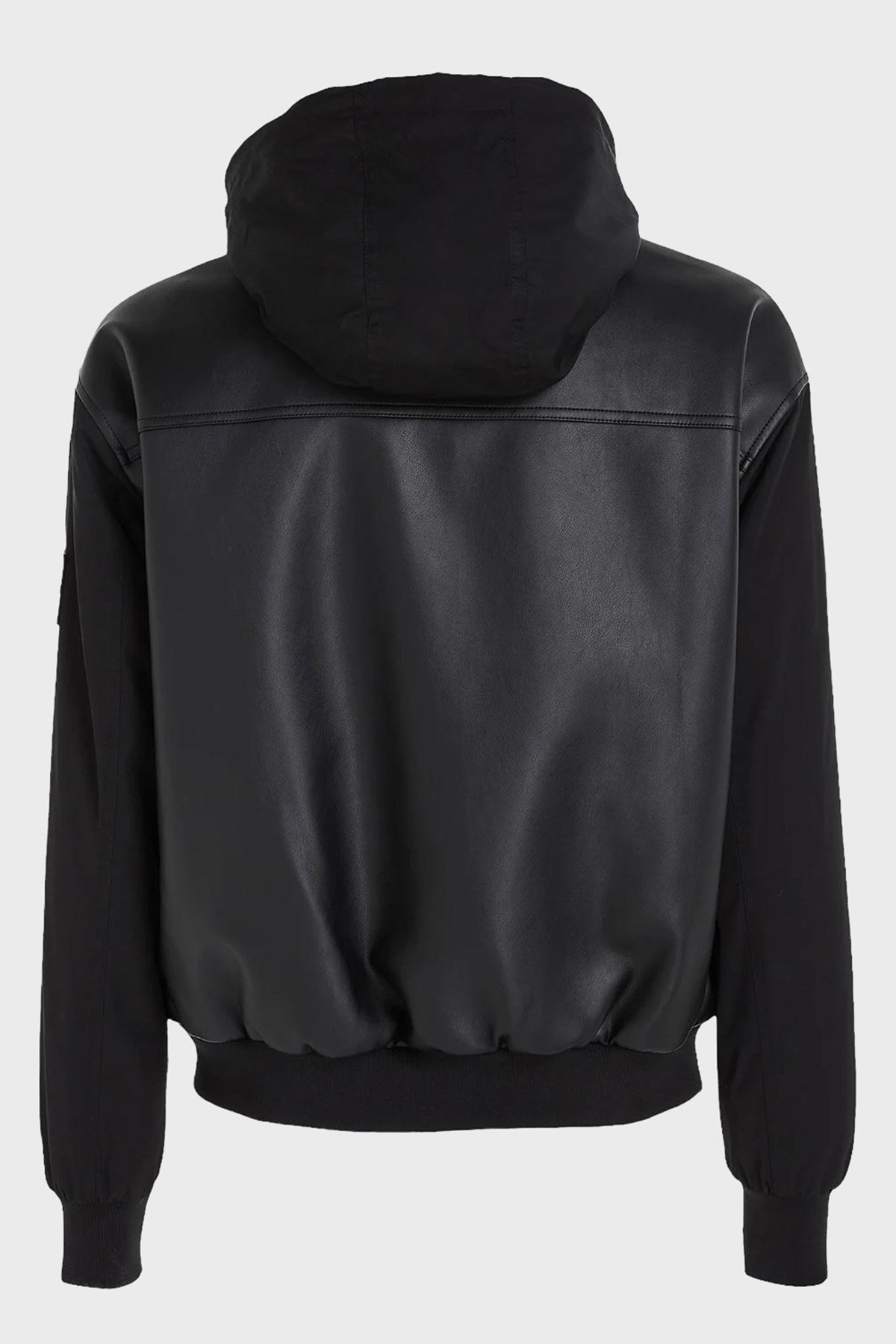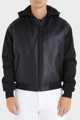 Relaxed Fit Çıkarılabilir Kapüşonlu Bomber J30J323399BEH Erkek Deri Ceket J30J323399 BEH SİYAH