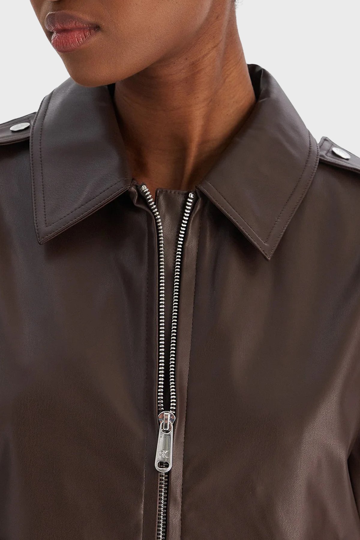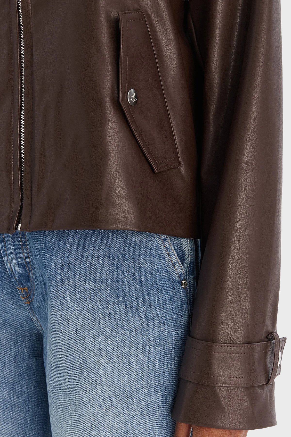 Relaxed Fit Klasik Yaka Fermuarlı Logolu LV047E501G2IN Bayan Ceket LV047E501G 2IN KAHVE