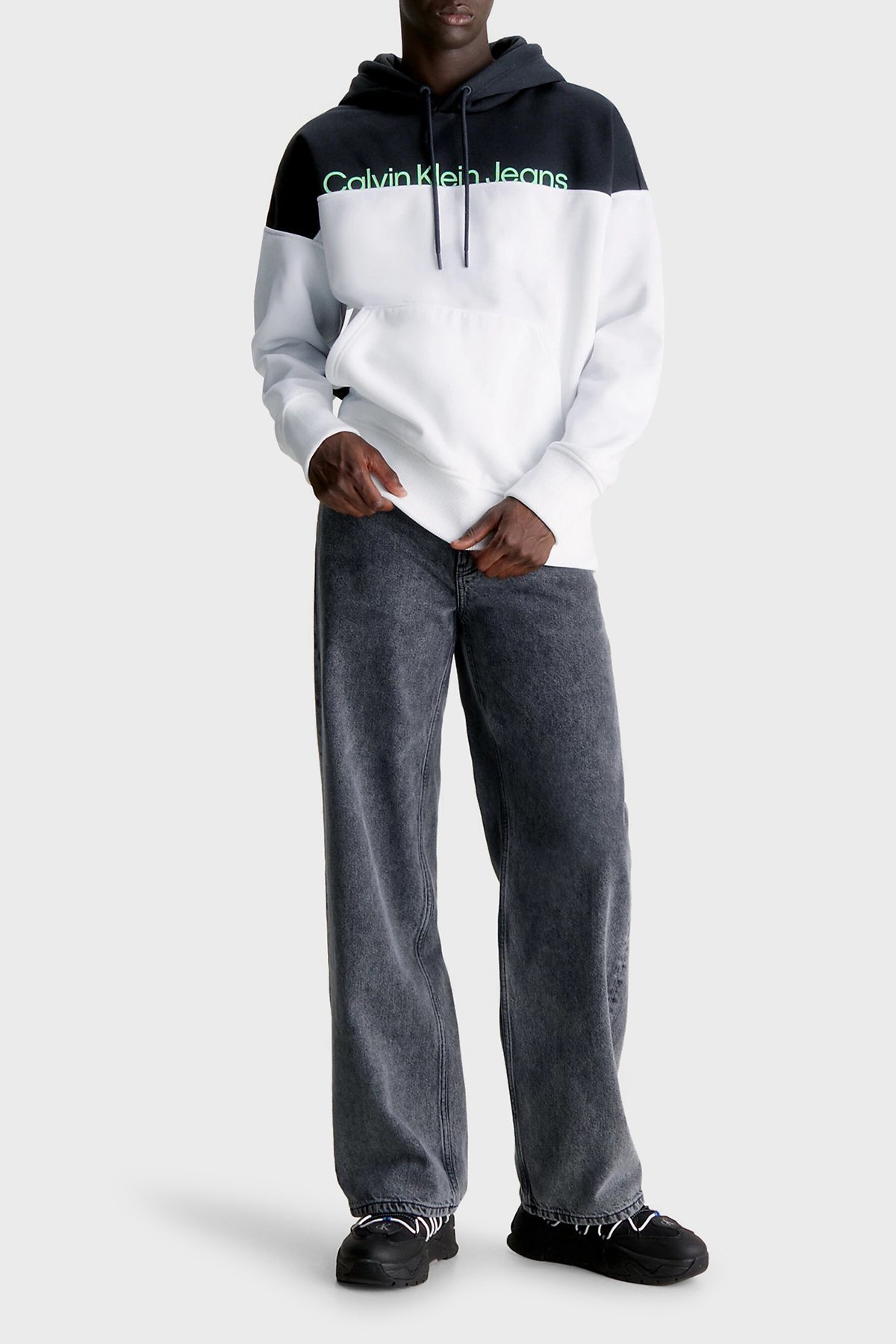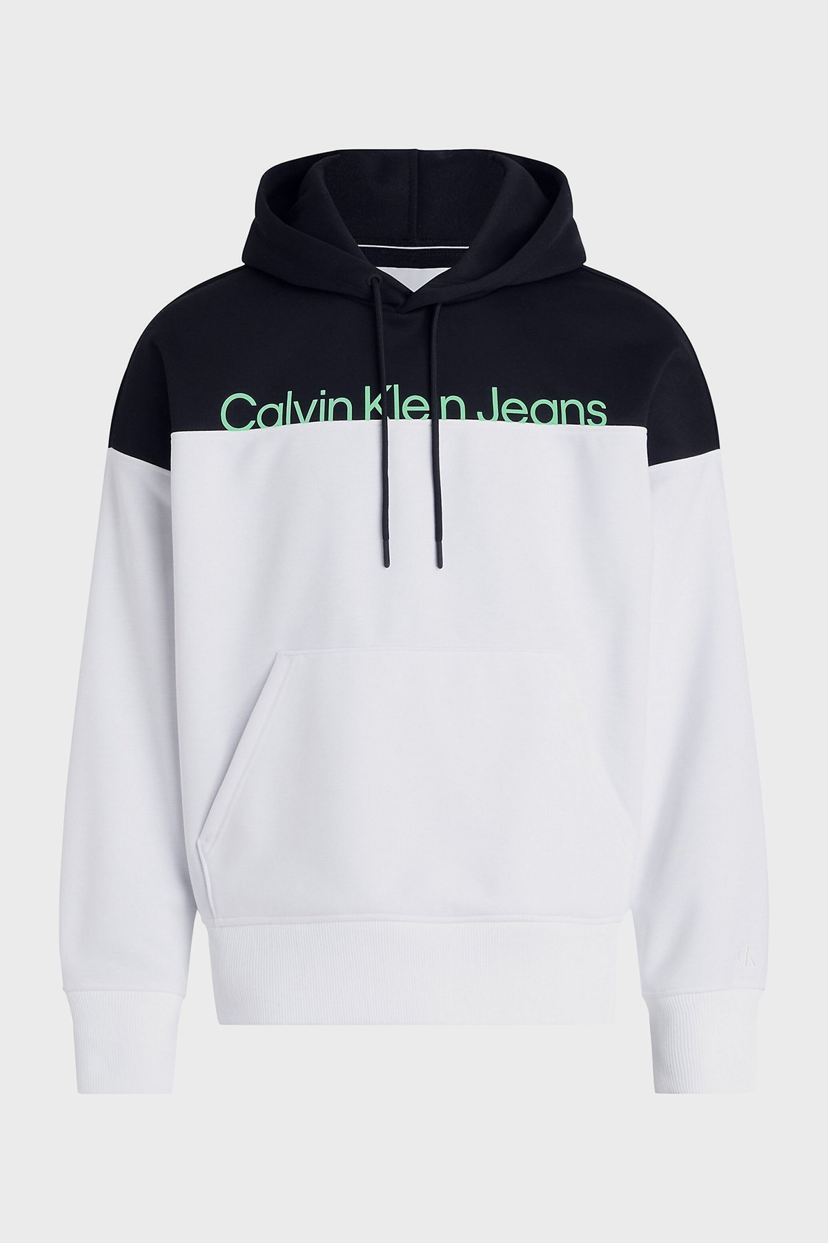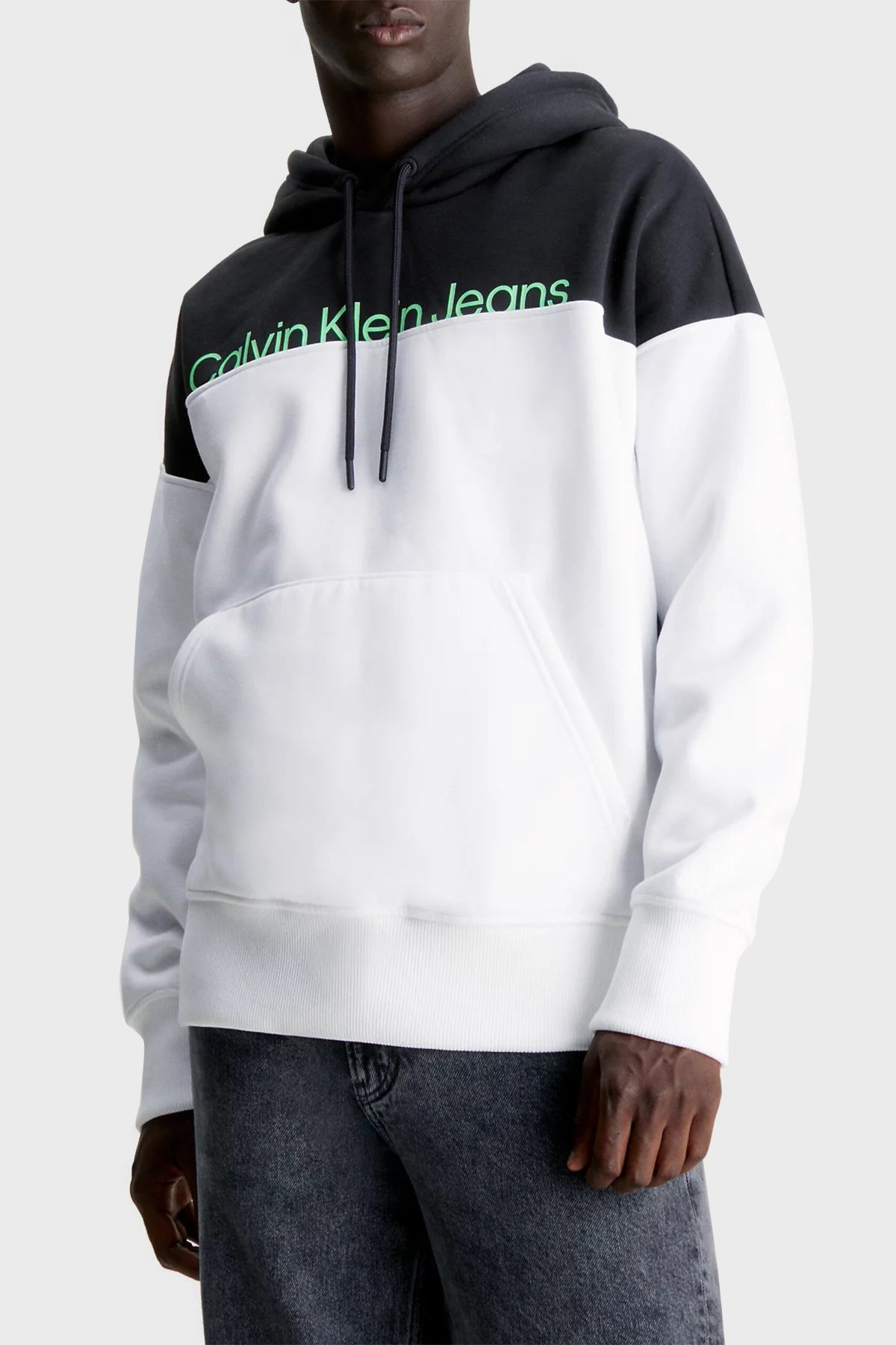 Renk Bloklu Kapüşonlu Kanguru Cepli Regular Fit J30J324089YAF Erkek Sweat J30J324089 YAF BEYAZ-SİYAH