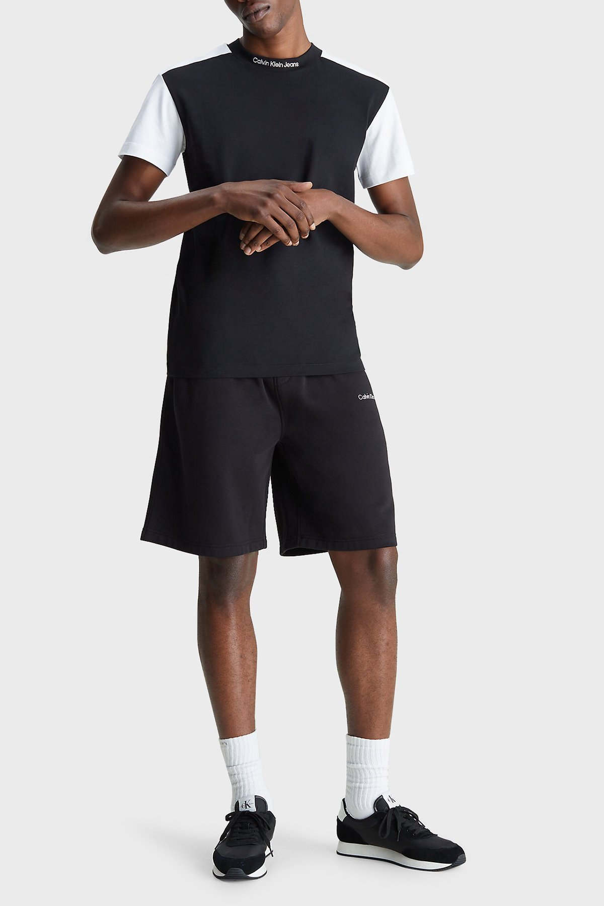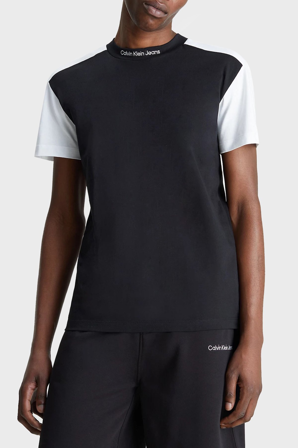 Renk Bloklu Organik Pamuklu Regular Fit Bisiklet Yaka Erkek T Shirt J30J323154 BEH SİYAH