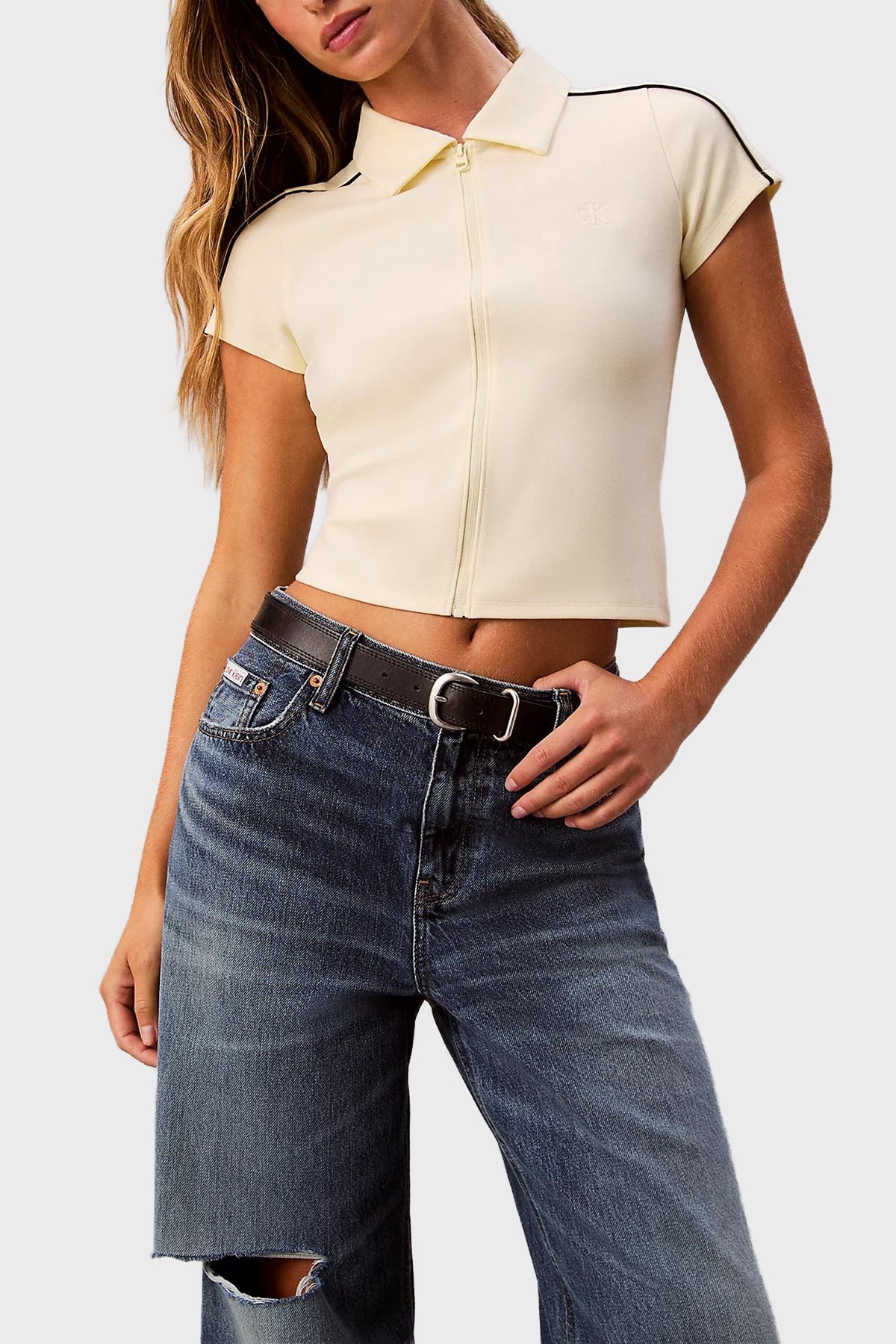 Şerit Detaylı Slim Fit Fermuarlı Crop LV047E212G2EW Bayan Polo LV047E212G 2EW SARI
