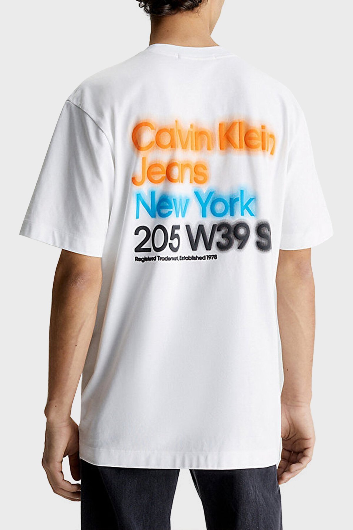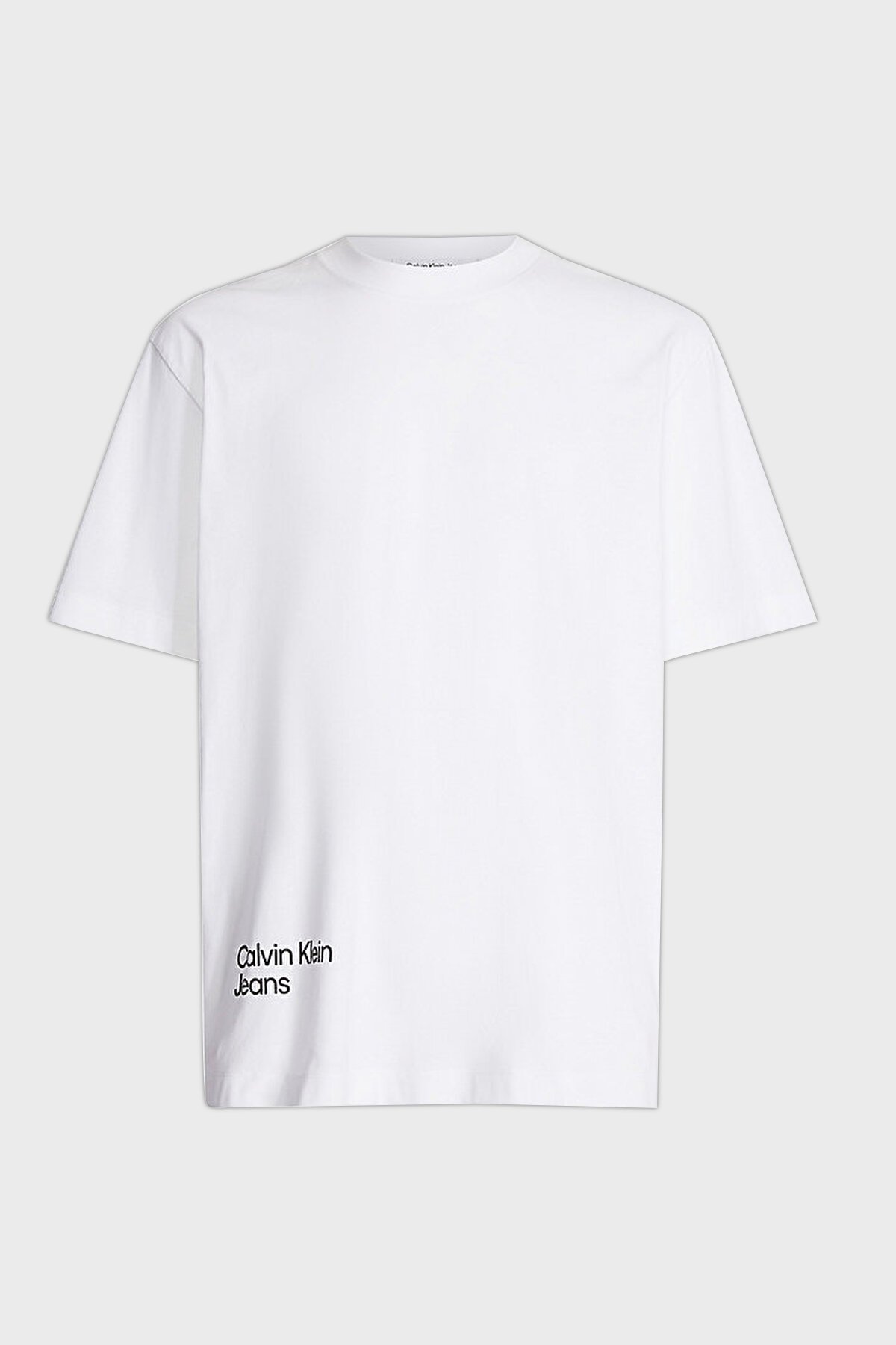 Sırt Baskılı Bisiklet Yaka Organik Pamuklu Relaxed Fit Erkek T Shirt J30J322881 YAF BEYAZ
