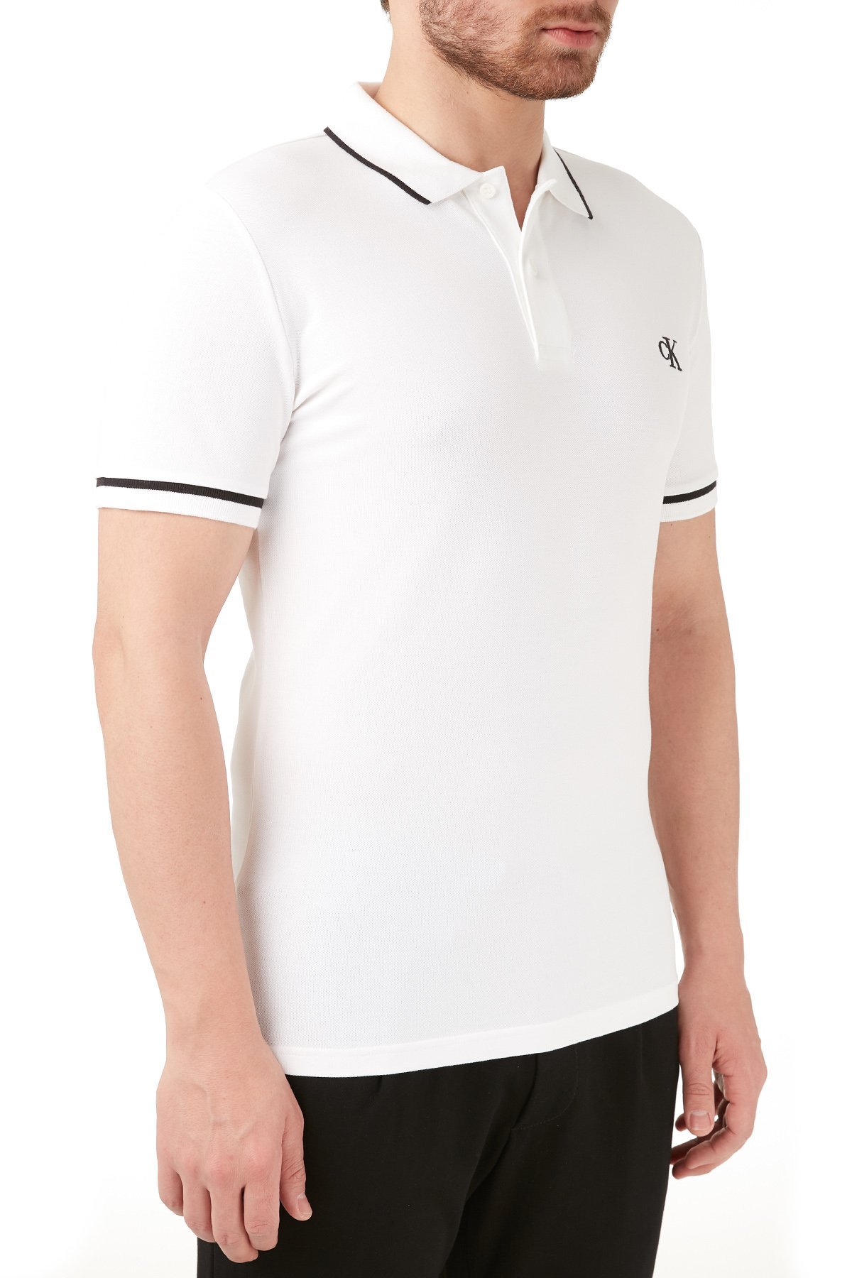 Slim Fit Düğmeli Yaka Pamuklu Polo Erkek T Shirt J30J315603 YAF BEYAZ