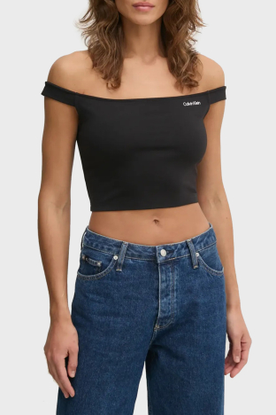 Streç Logolu Slim Fit Kayık Yaka J20J225542BEH Bayan Top J20J225542 BEH SİYAH