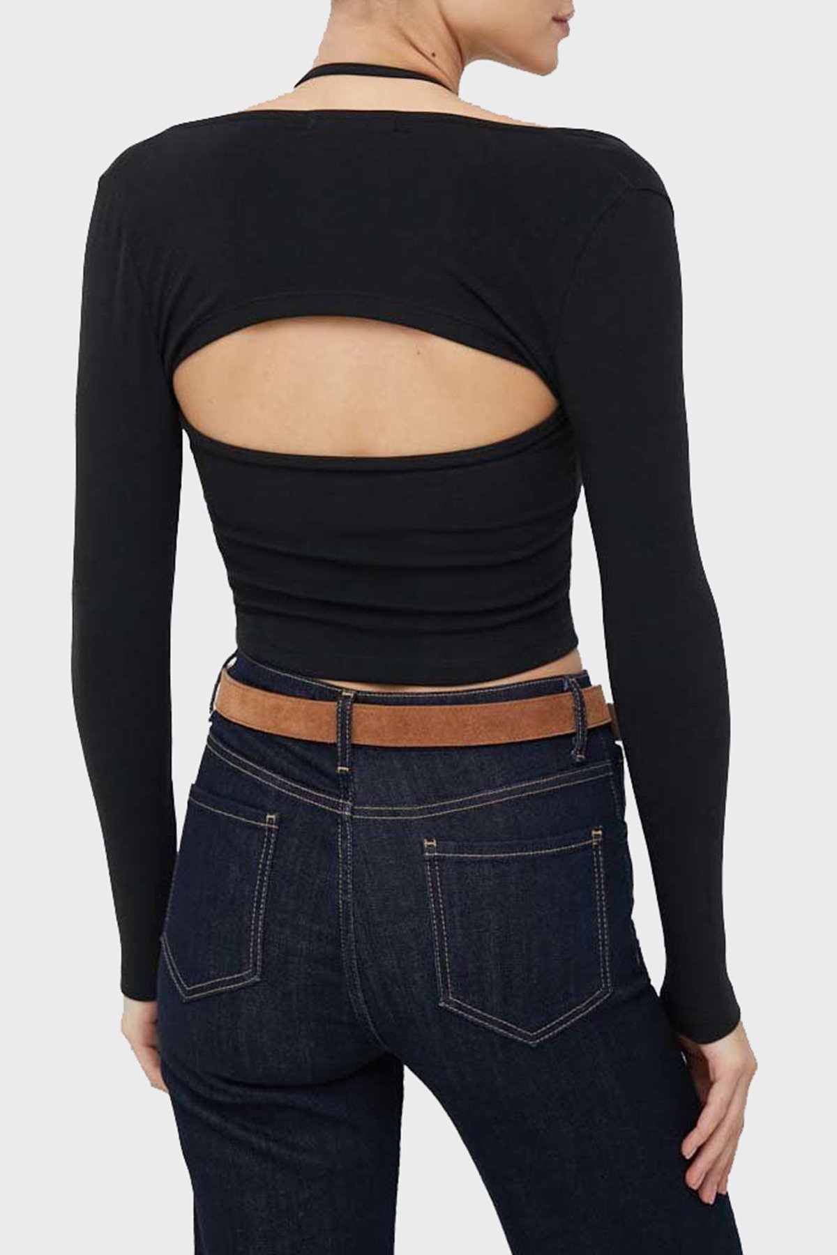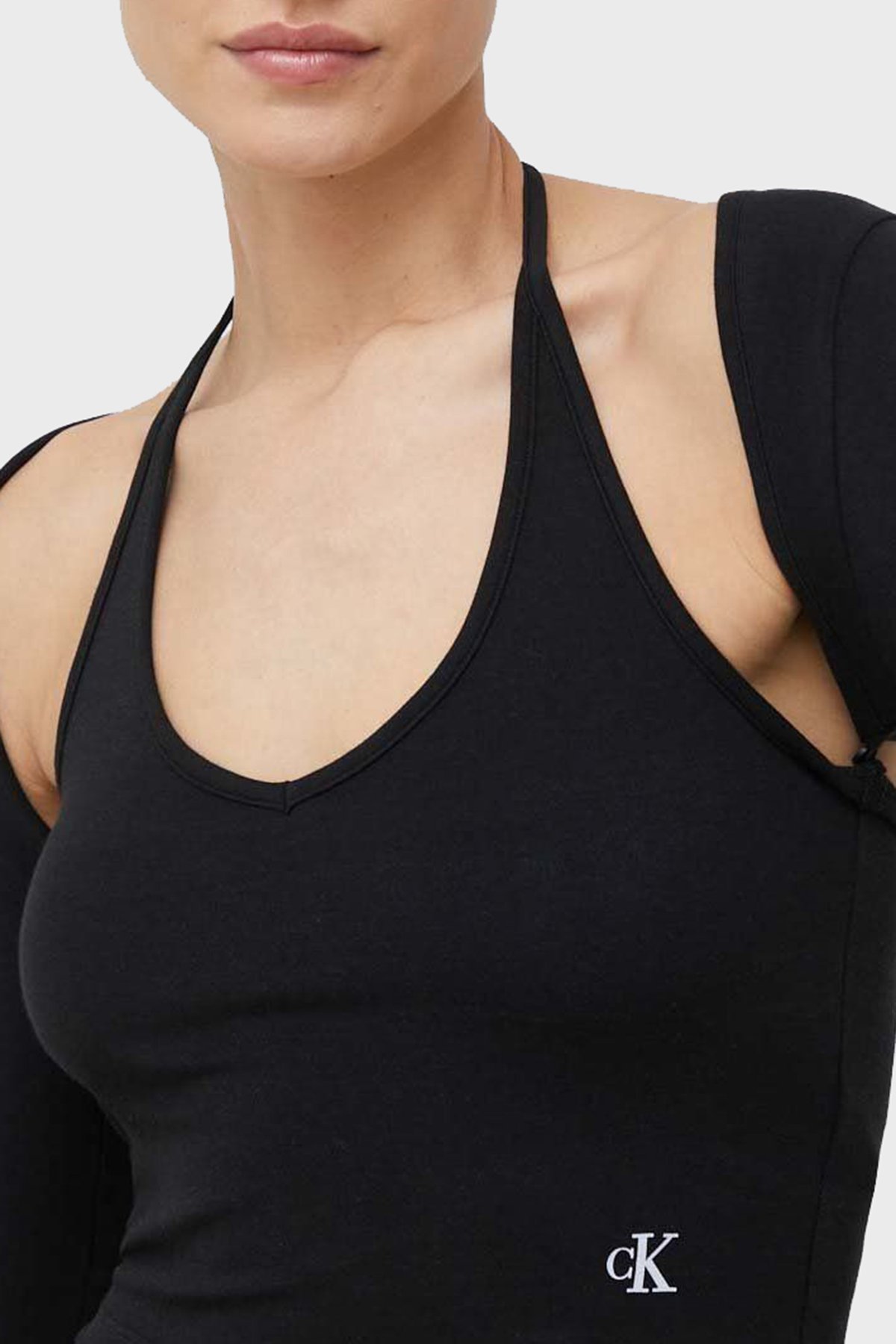 Streç Pamuklu Çıkarılabilir Üst 2si 1 Arada V Yaka J20J220538BEH Bayan T Shirt J20J220538 BEH SİYAH