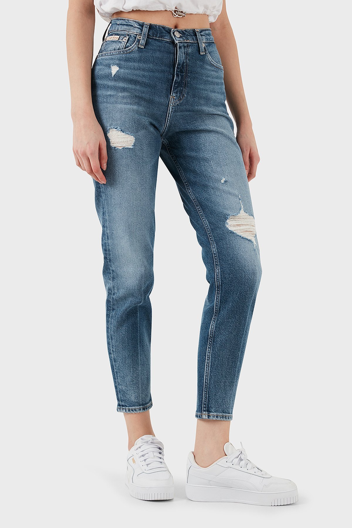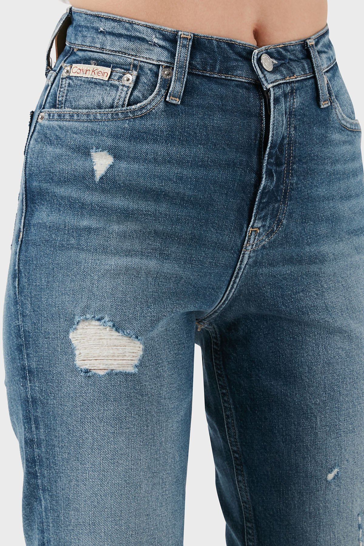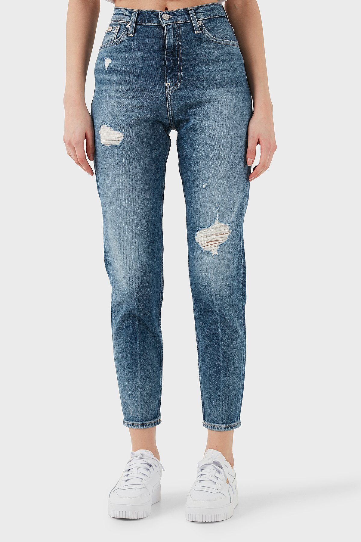 Streç Pamuklu Mom Fit Yüksek Bel Boru Paça Jeans J20J2245131A4 Bayan Kot Pantolon J20J224513 1A4 MAVİ