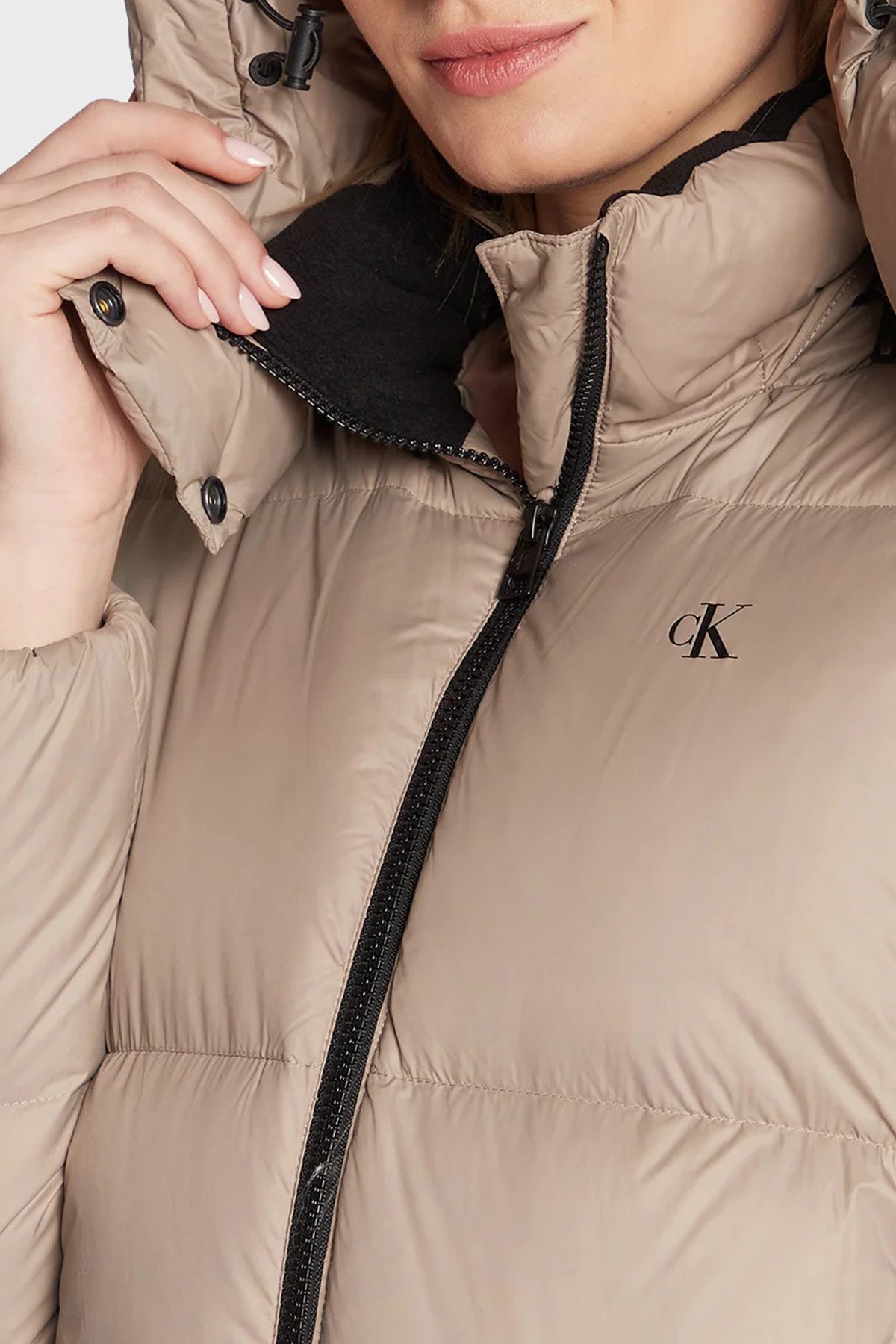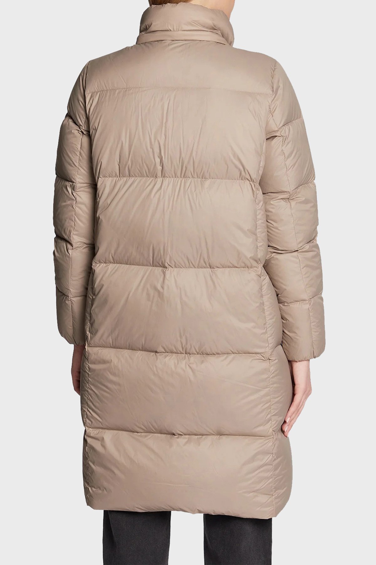 Su Geçirmez Kuş Tüyü Dolgulu Çıkarılabilir Kapüşonlu Uzun Bayan Mont J20J219820 A03 BEJ