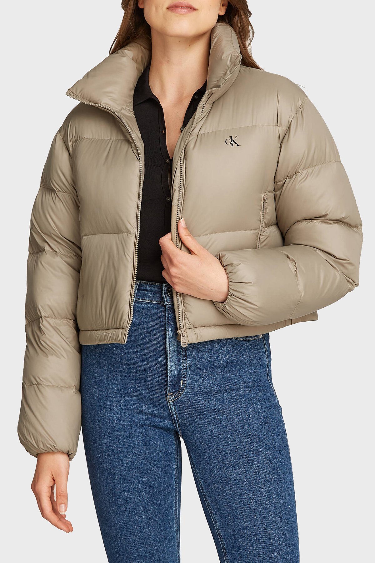 Su İtici Kuş Tüyü Dolgulu Relaxed Fit Dik Yaka Crop Şişme J20J223577PAV Bayan Mont J20J223577 PAV GRİ