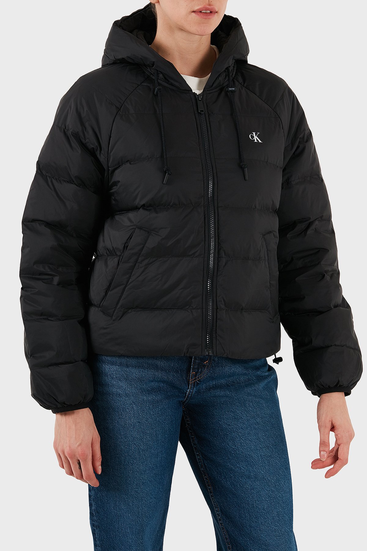 Suya Dayanıklı Logolu Regular Fit Kapüşonlu Şişme LV047C521GUB1 Bayan Mont LV047C521G UB1 SİYAH