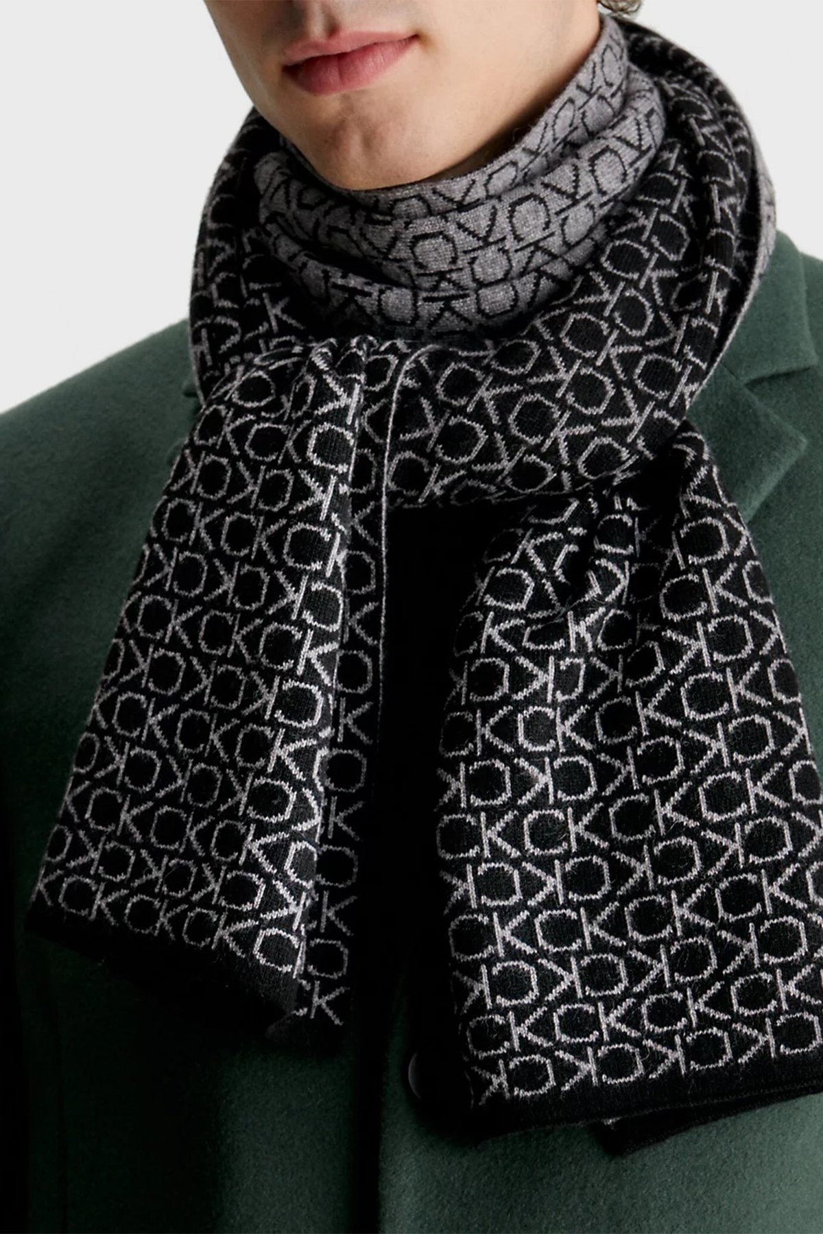 Tamamı Logolu Kaşmir ve Yün Karışımlı K50K509703BAX Erkek Atkı K50K509703 BAX SİYAH