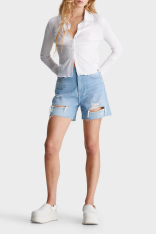 Yırtık Detaylı Yüksek Bel Mom Denim J20J2228031AA Bayan Short J20J222803 1AA AÇIK MAVİ