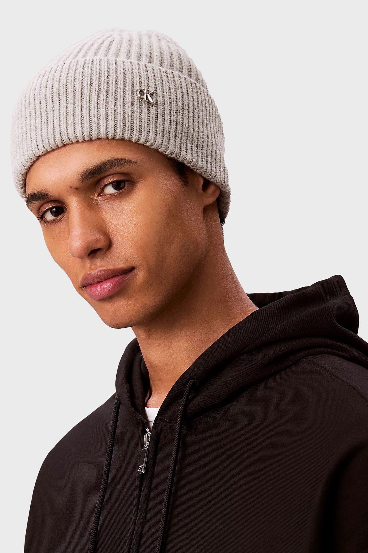 Yün Karışımlı Logolu LV04D8032GP79 Erkek Bere LV04D8032G P79 GRİ