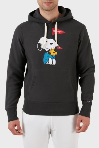 Baskılı Regular Fit Kapüşonlu Kanguru Cepli % 100 Pamuk Erkek Sweat 217799 FADED BLACK FÜME