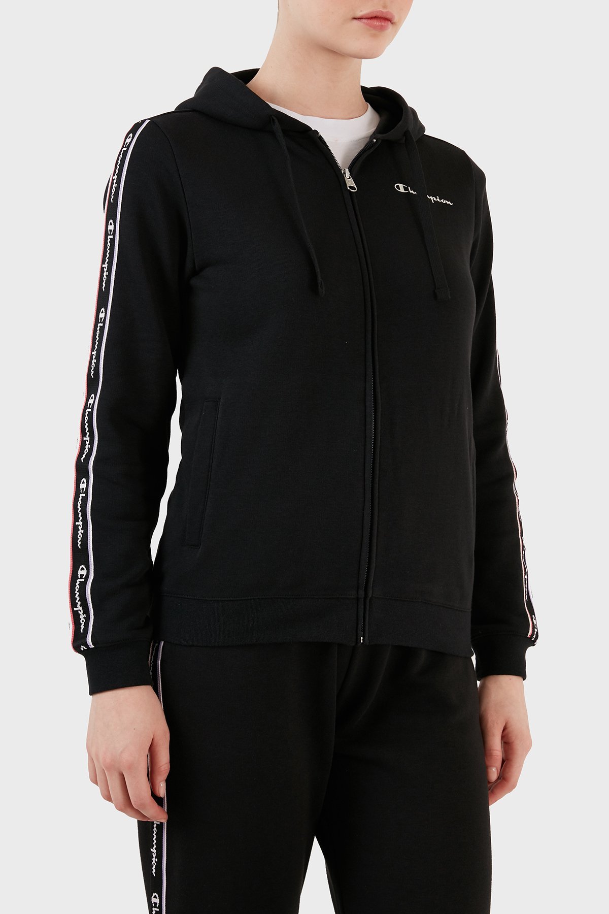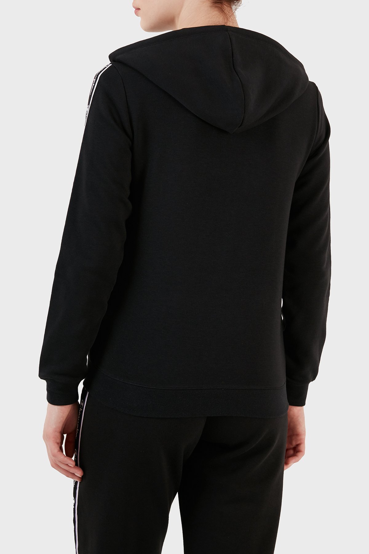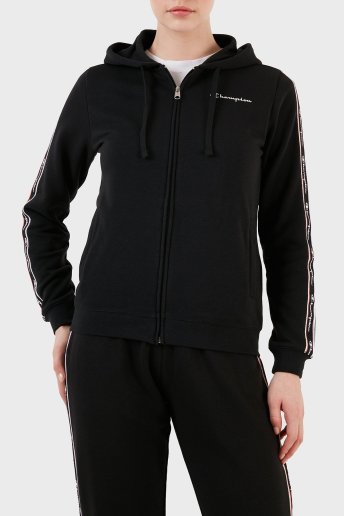 Logo Şeritli Pamuk Karışımlı Kapüşonlu Fermuarlı Bayan Sweat 117293 NBK KK001 SİYAH
