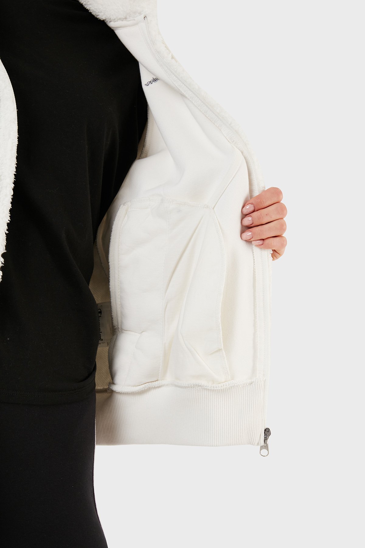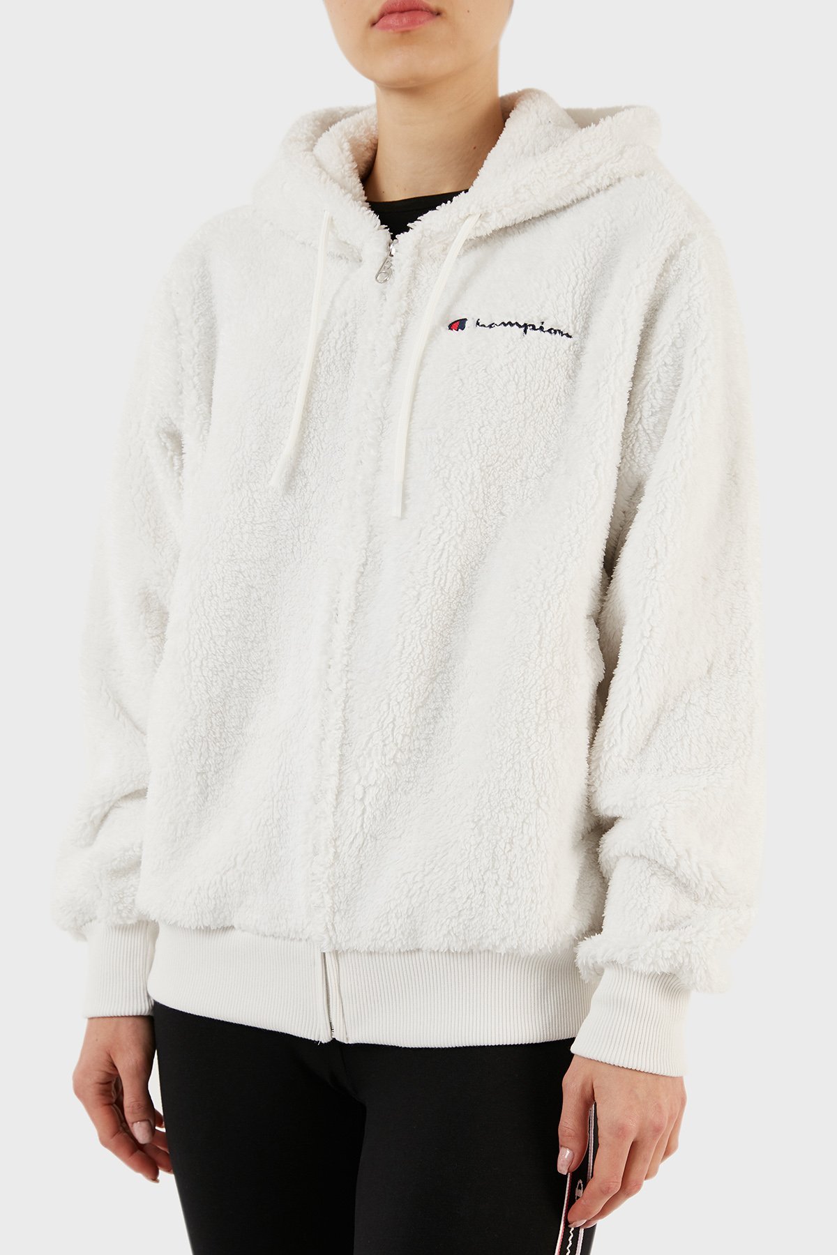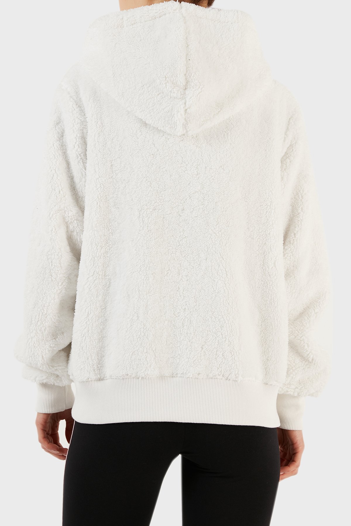 Logolu Kapüşonlu Tam Fermuarlı Polar Teddy Bayan Sweat 116599 WAY WW036 BEYAZ