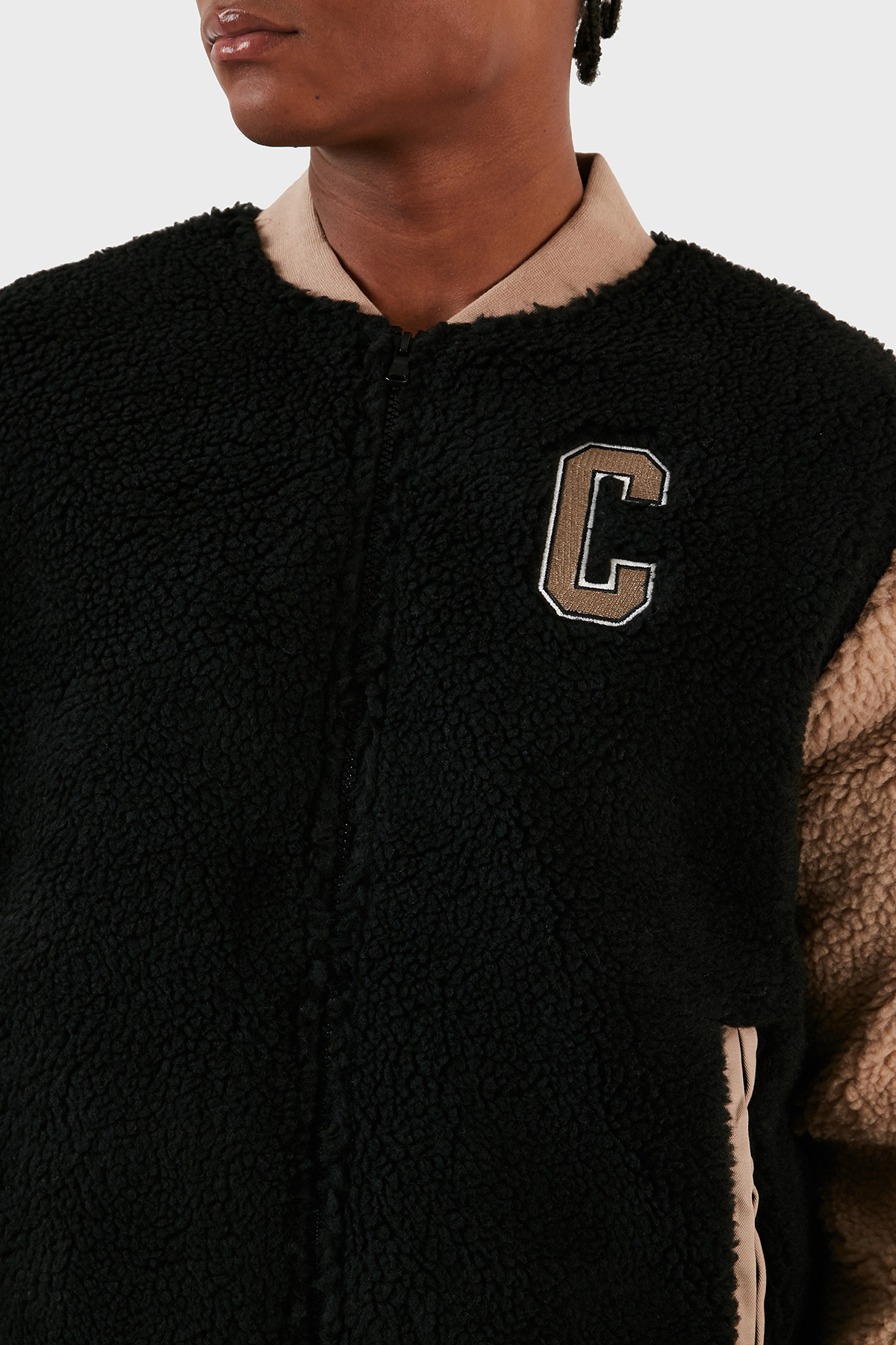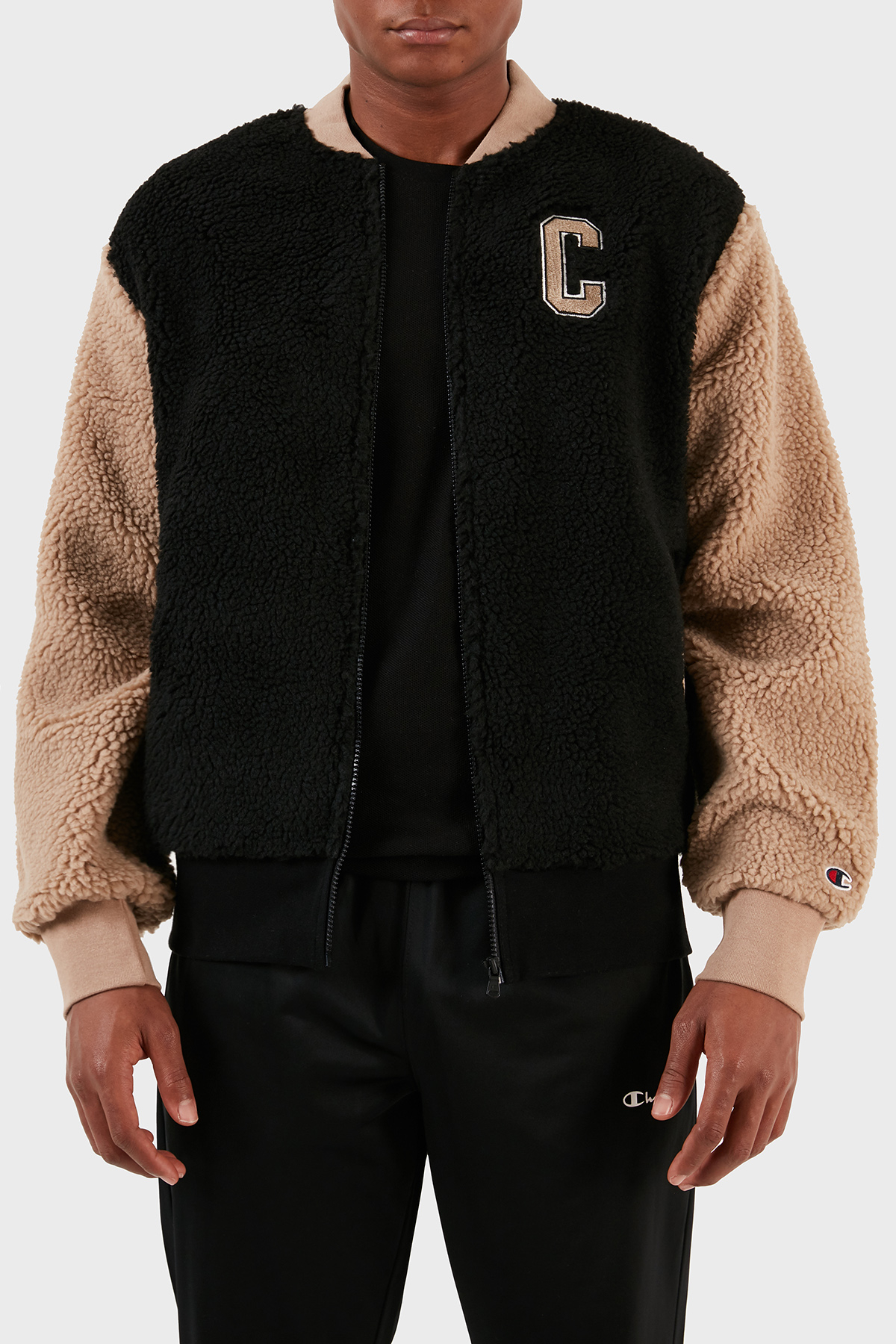 Renk Bloklu Kolej Yaka Tam Fermuarlı Teddy Polar Bomber Erkek Ceket 219448 NBK/SVK KK001 SİYAH