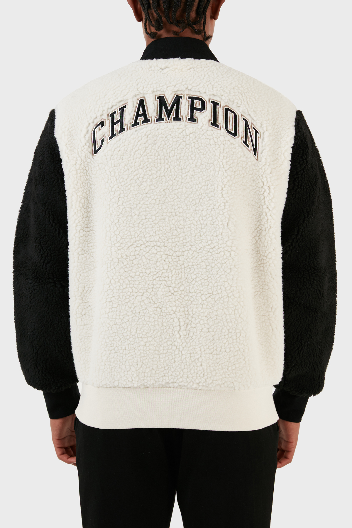 Renk Bloklu Kolej Yaka Tam Fermuarlı Teddy Polar Bomber Erkek Ceket 219448 WSW/NBK WW034 EKRU