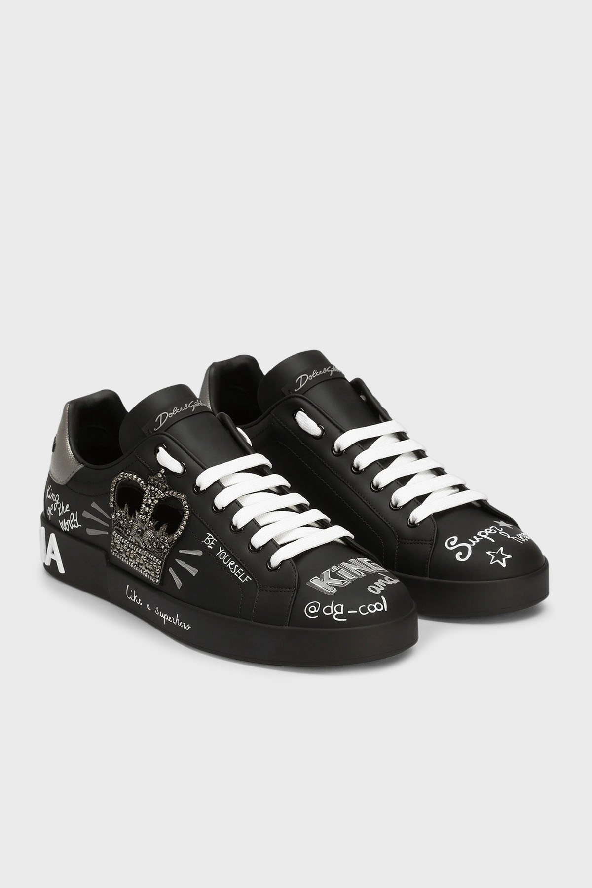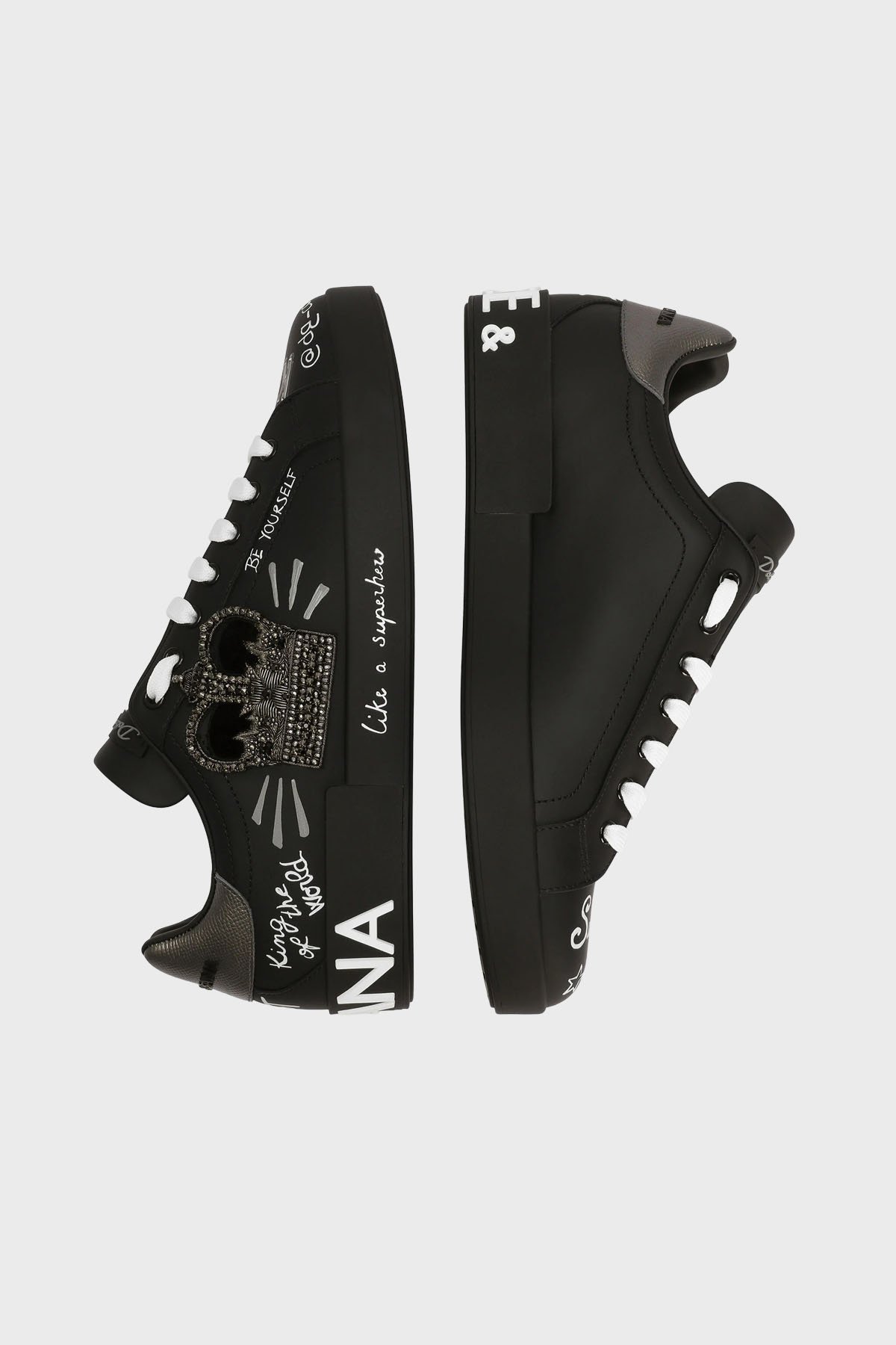 Dolce & Gabbana Hakiki Deri Logolu Sneaker Erkek Ayakkabı CS1760 AZ268 8T724 SİYAH