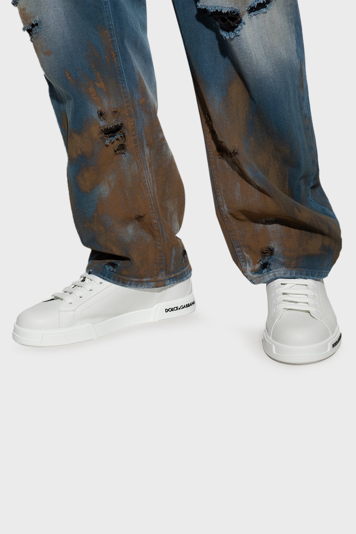 Dolce & Gabbana Hakiki Deri Sneaker Erkek Ayakkabı CS2213 AA335 80001 BEYAZ
