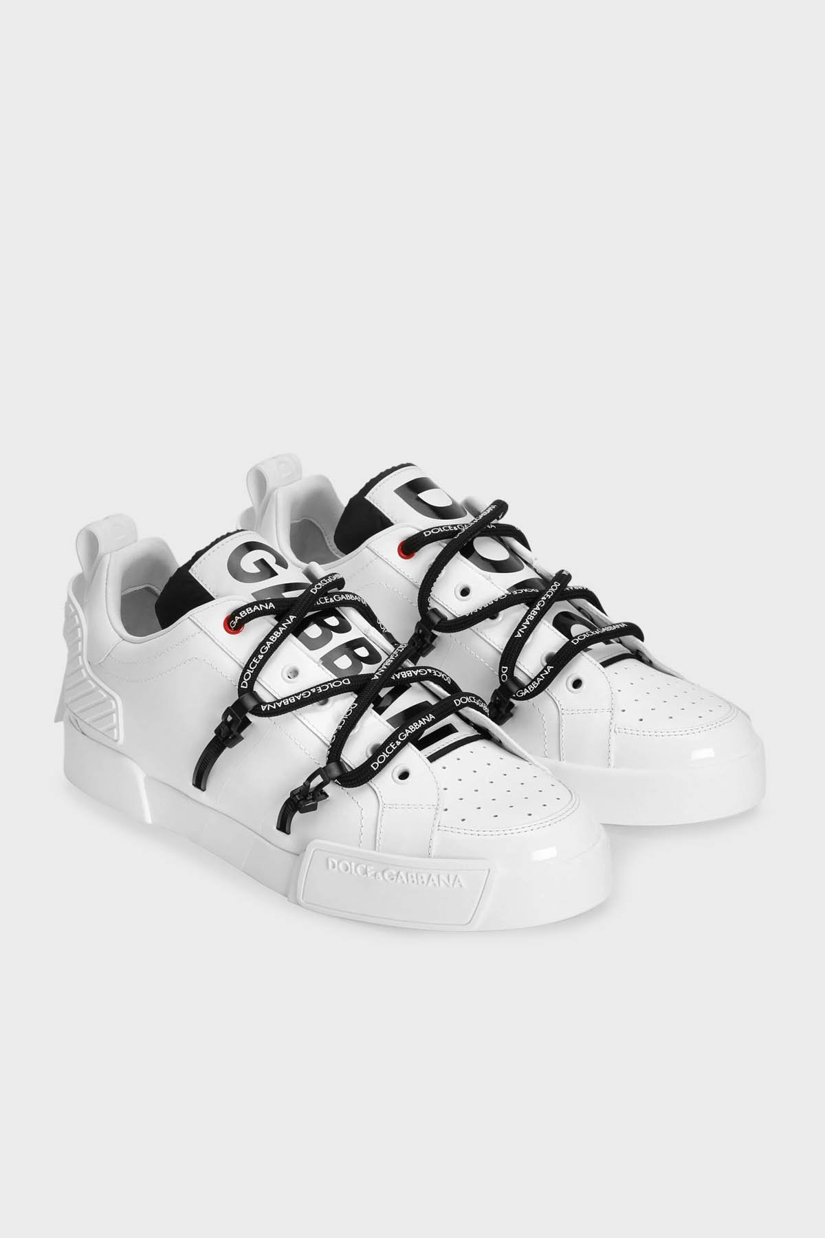 Dolce & Gabbana Logolu Deri Sneaker Erkek Ayakkabı CS2328 AJ986 89697 BEYAZ