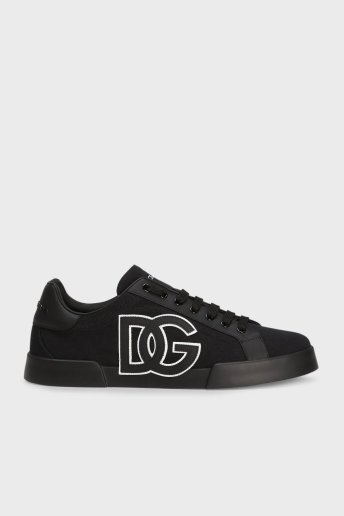 Dolce & Gabbana Logolu Hakiki Deri ve Pamuk Karışımlı Sneaker Erkek Ayakkabı CS2343 AE629 8B956 SİYAH